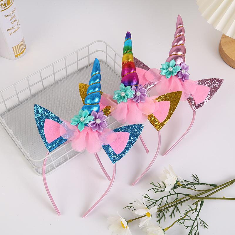 Diadema de Unicornio Europea y Americana Nueva Halloween Niños Fiesta de Cumpleaños Diadema Punto Venta al por Mayor Accesorios para el Cabello de Princesa Hebilla para el Cabello