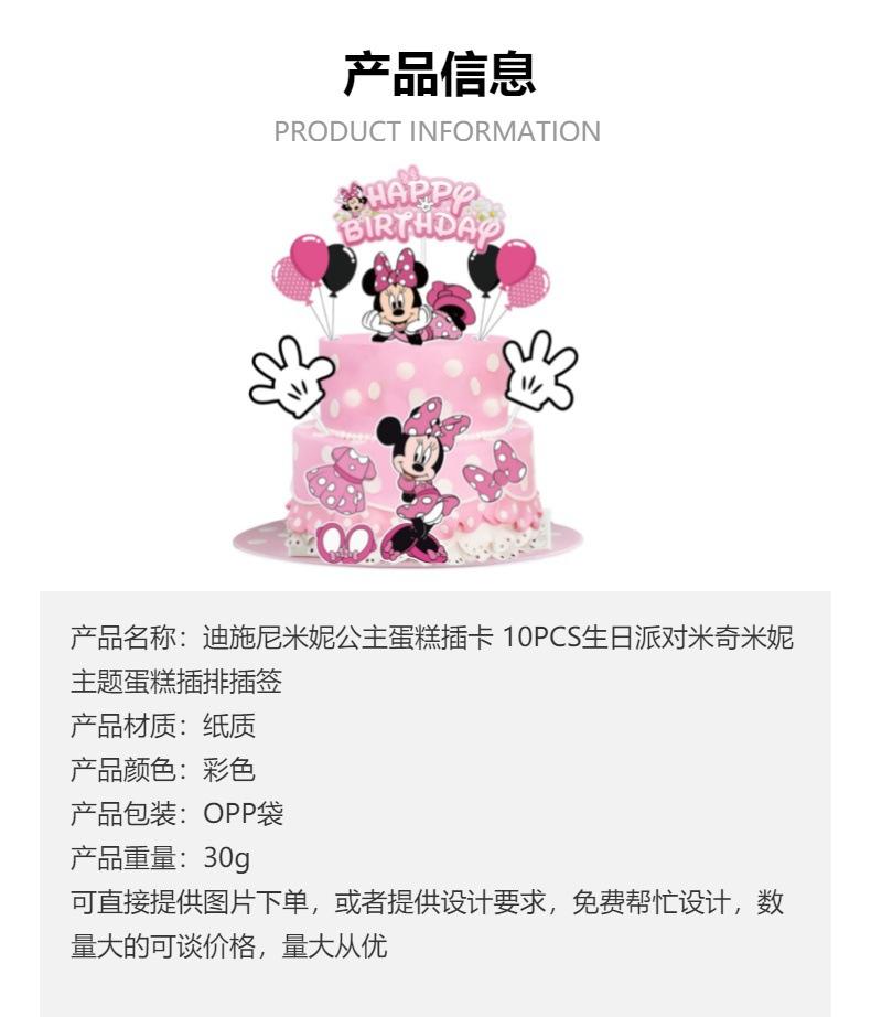 Tarjeta para pastel de princesa Dixie Minnie, 10 unidades, para fiesta de cumpleaños, temática de Mickey y Minnie