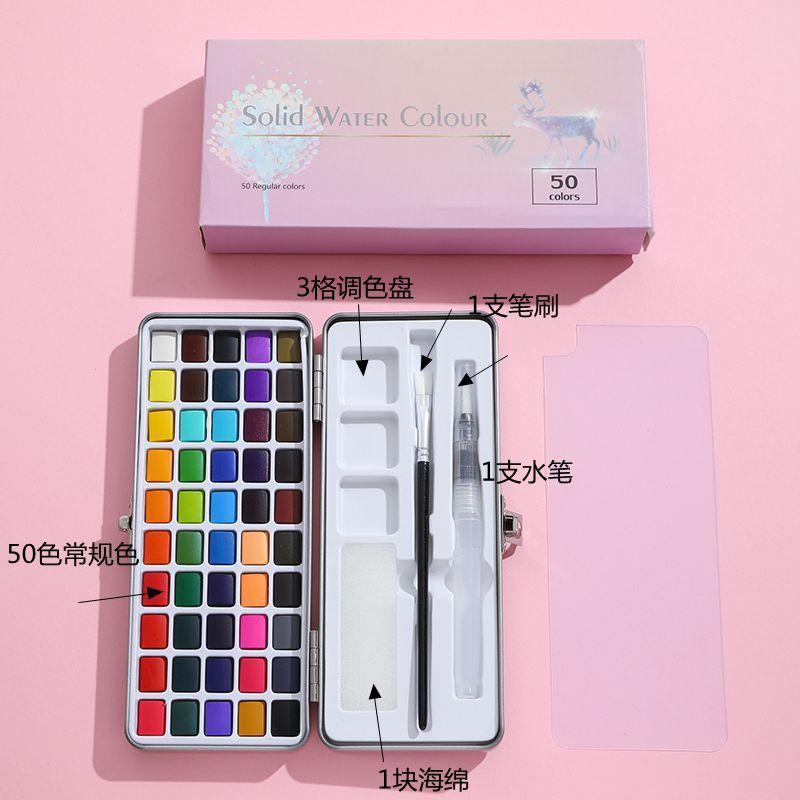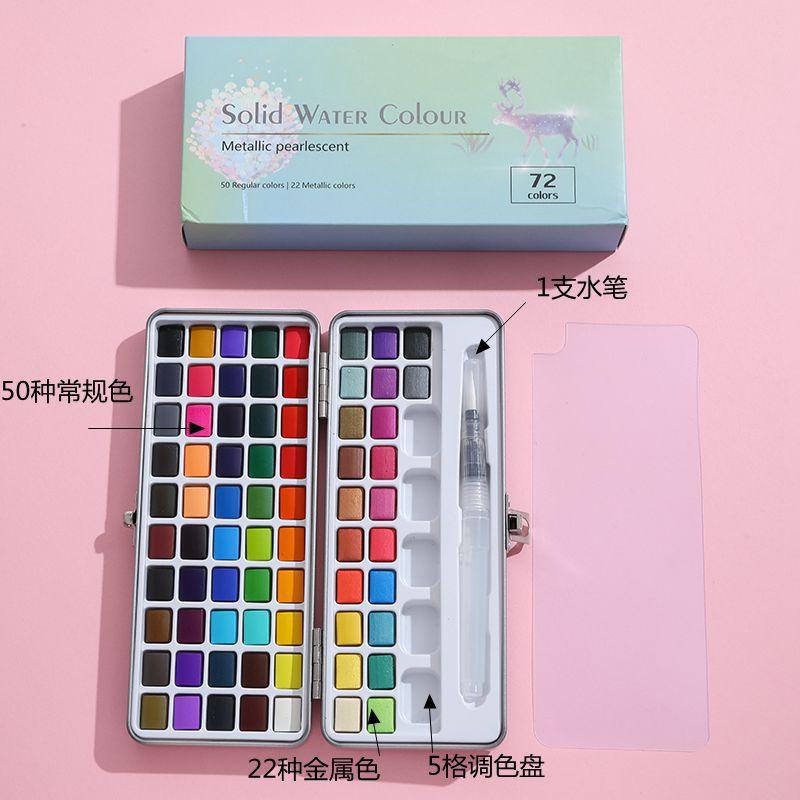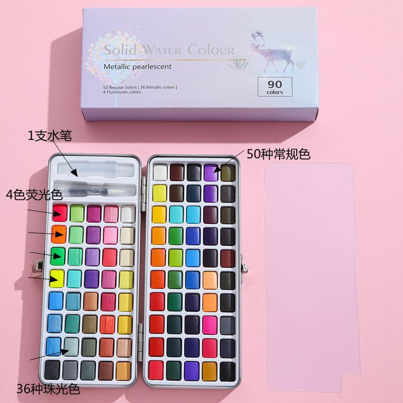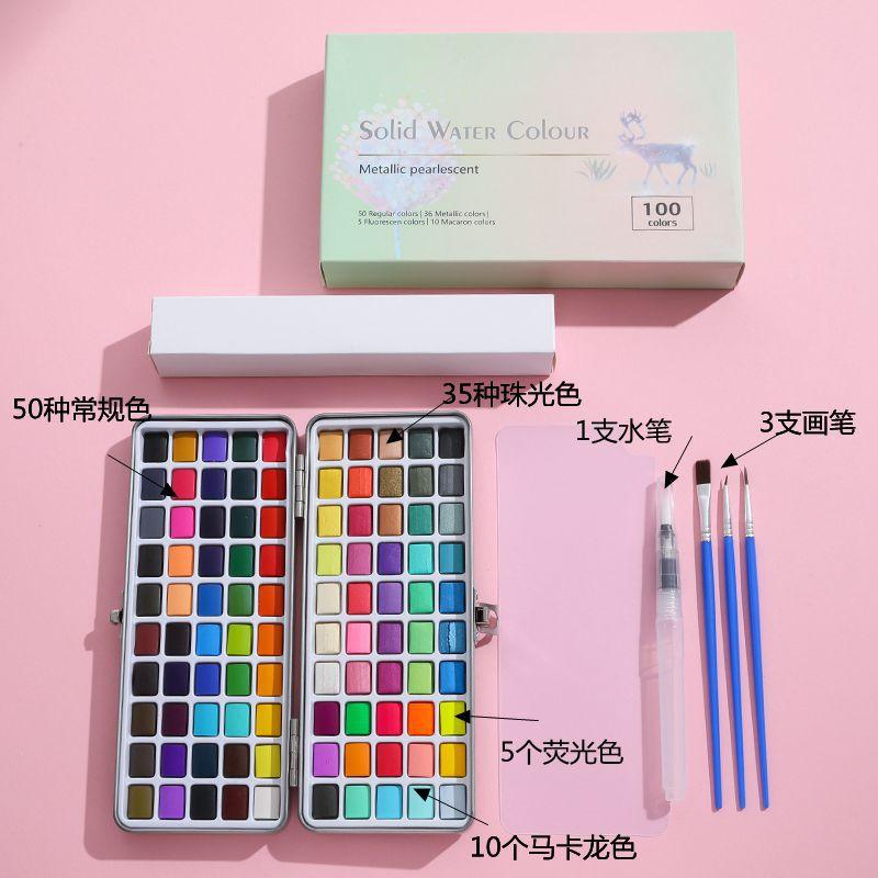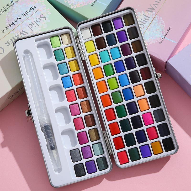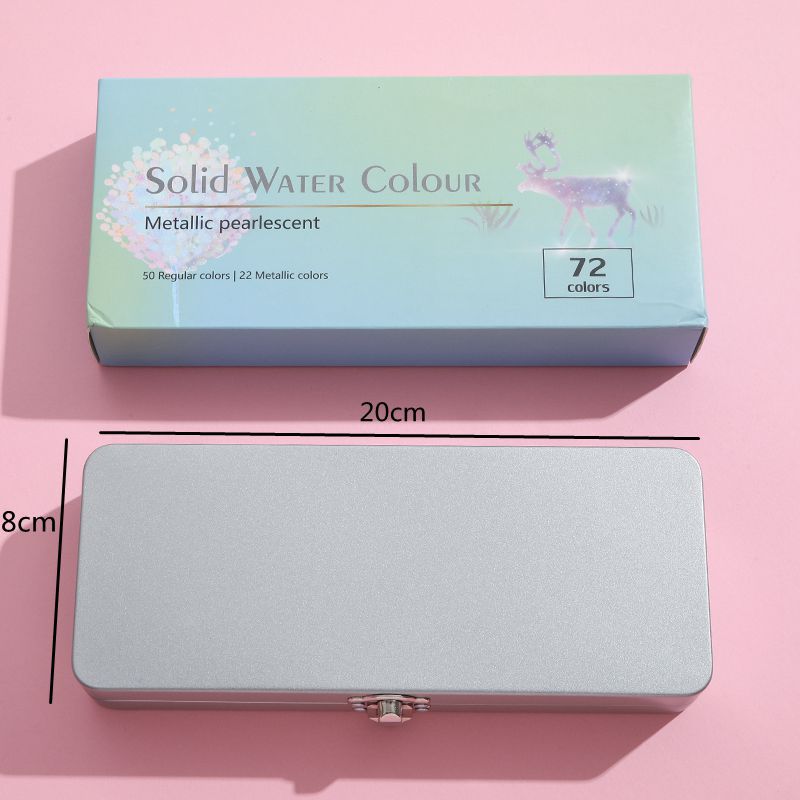 Caja de hierro transfronteriza, pintura de acuarela sólida, 50/72/90/100 colores, pintura de acuarela perlada portátil
