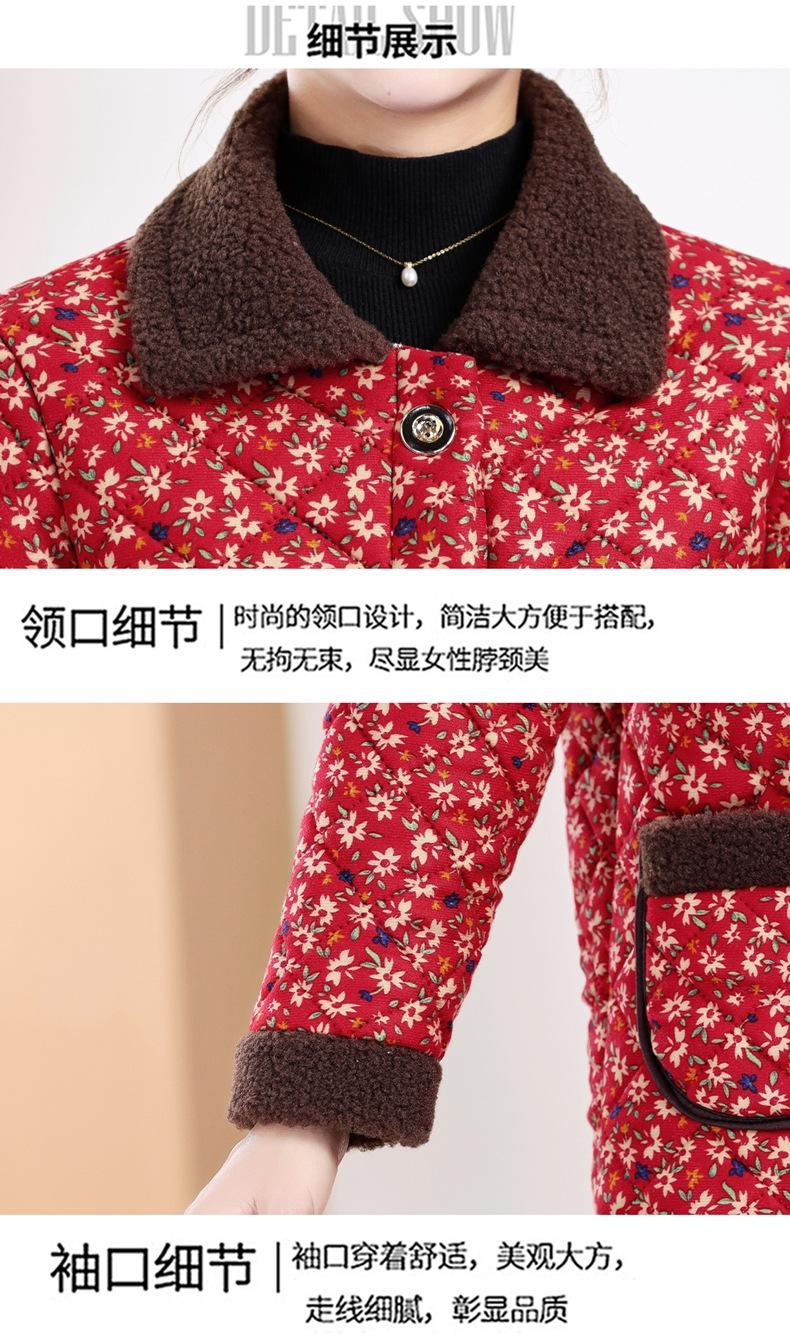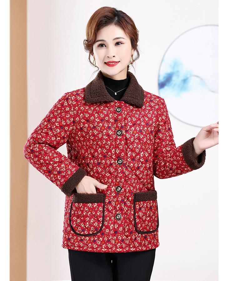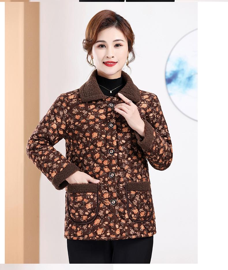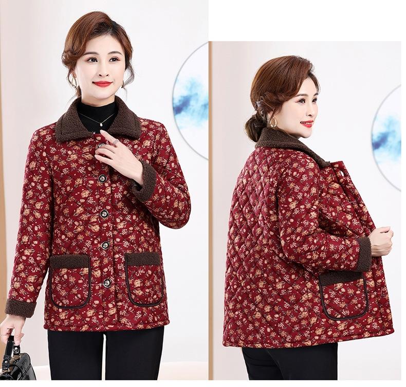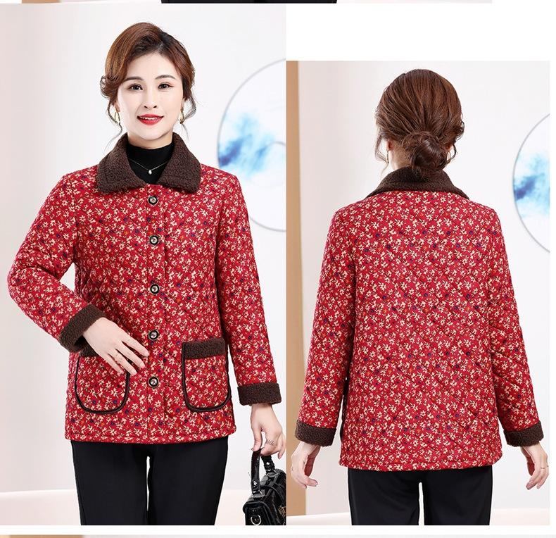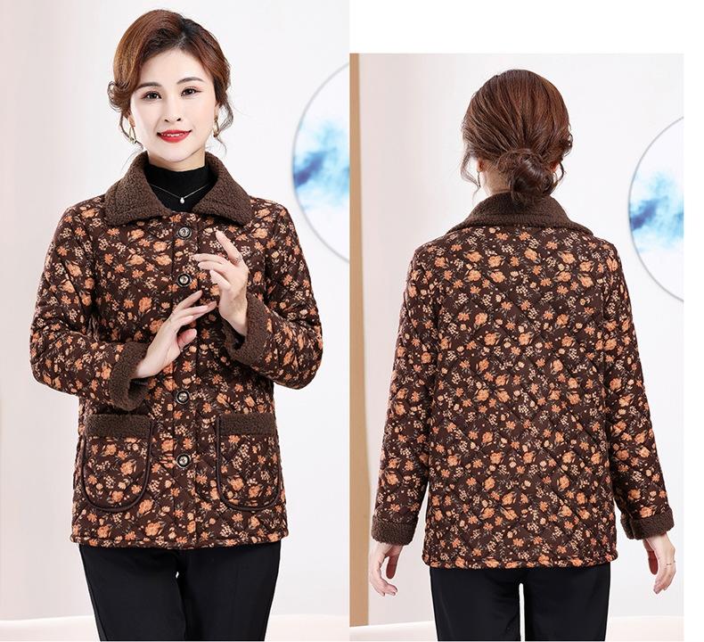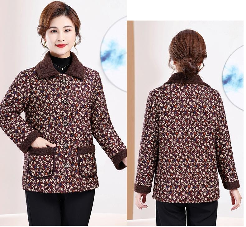 Abrigo acolchado de algodón para madres de mediana edad y ancianas, chaqueta acolchada de algodón, nuevo abrigo de invierno grueso, suelto, con forro polar, floral, cálido, acolchado de algodón, abrigo de estilo occidental para mujeres