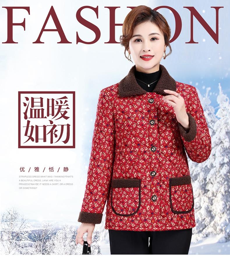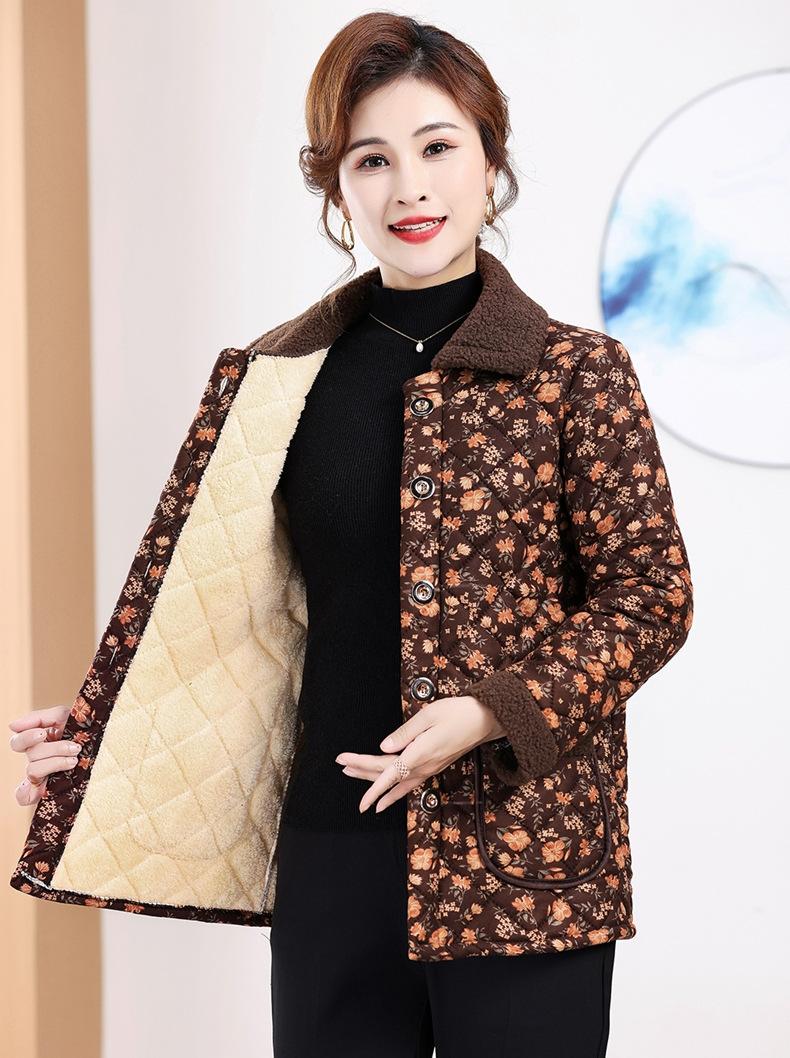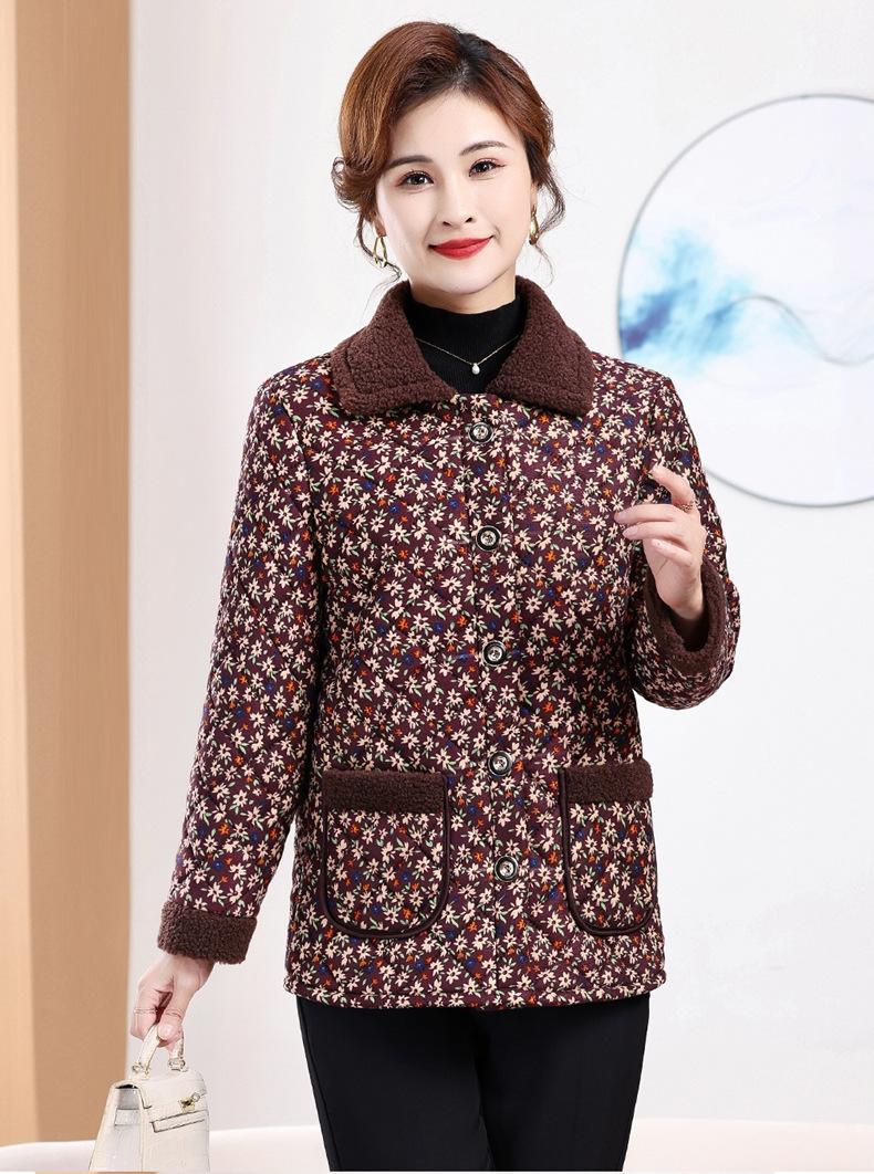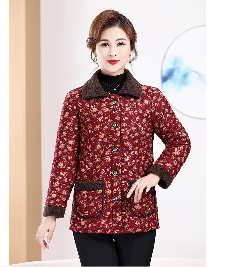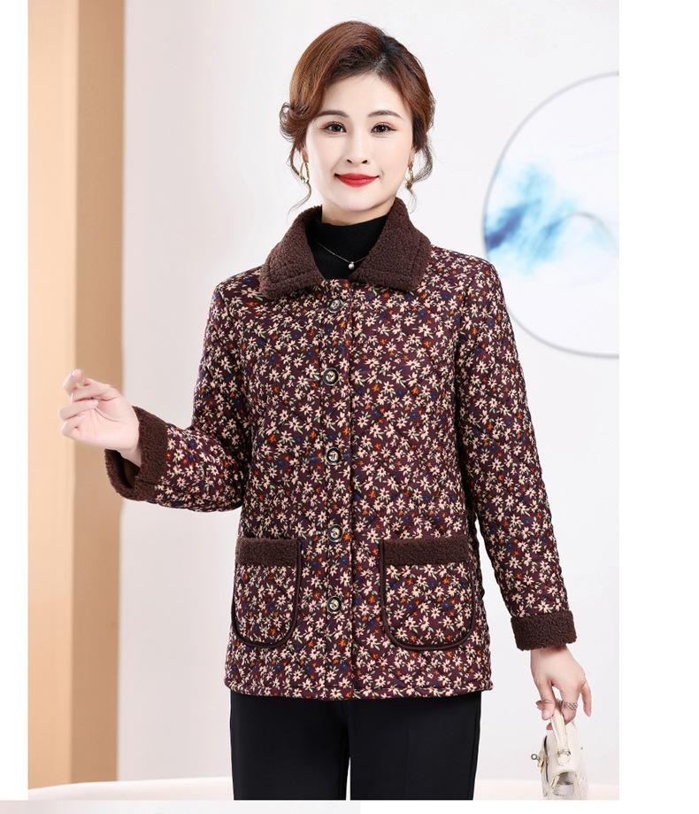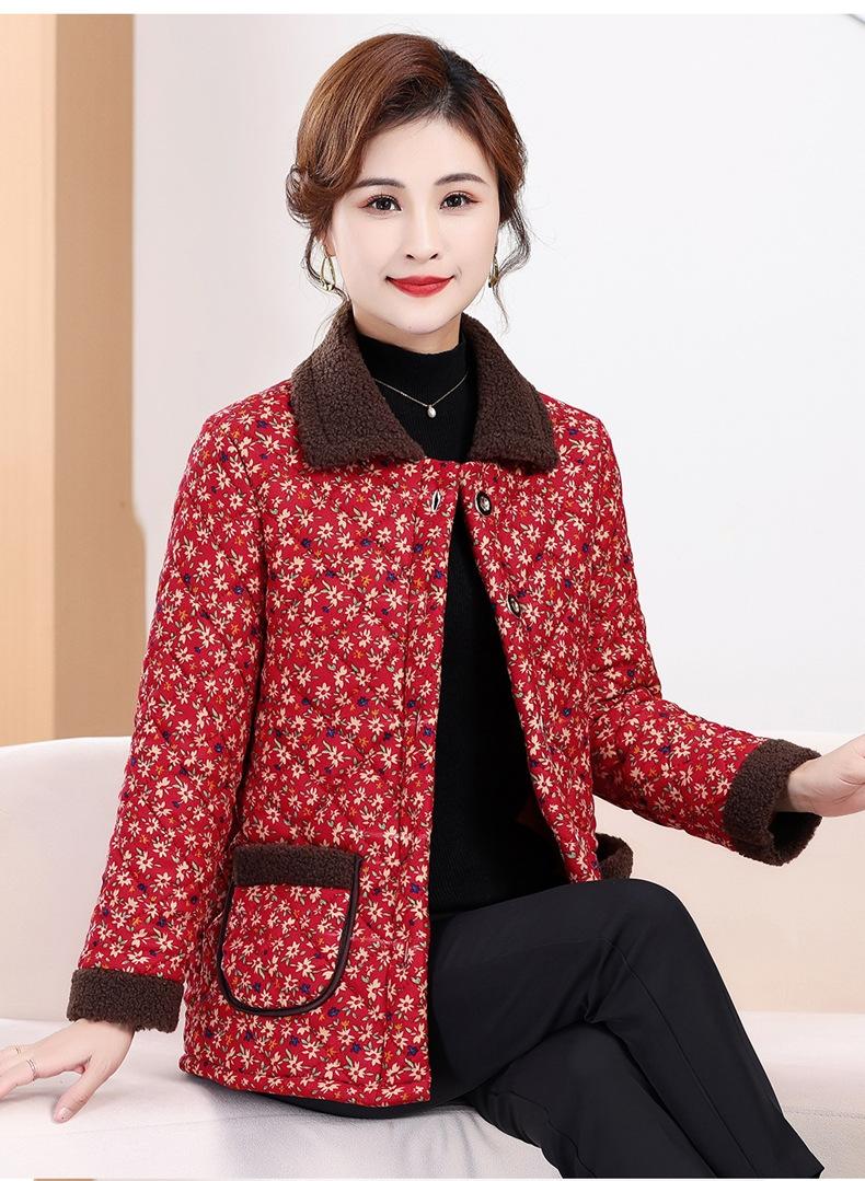 Abrigo acolchado de algodón para madres de mediana edad y ancianas, chaqueta acolchada de algodón, nuevo abrigo de invierno grueso, suelto, con forro polar, floral, cálido, acolchado de algodón, abrigo de estilo occidental para mujeres