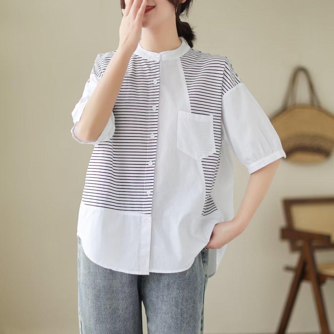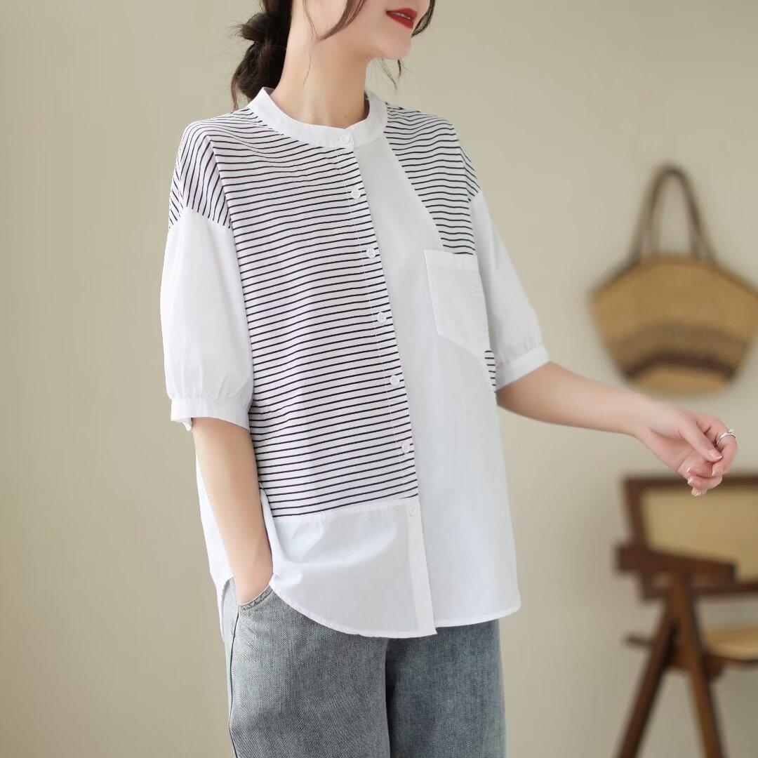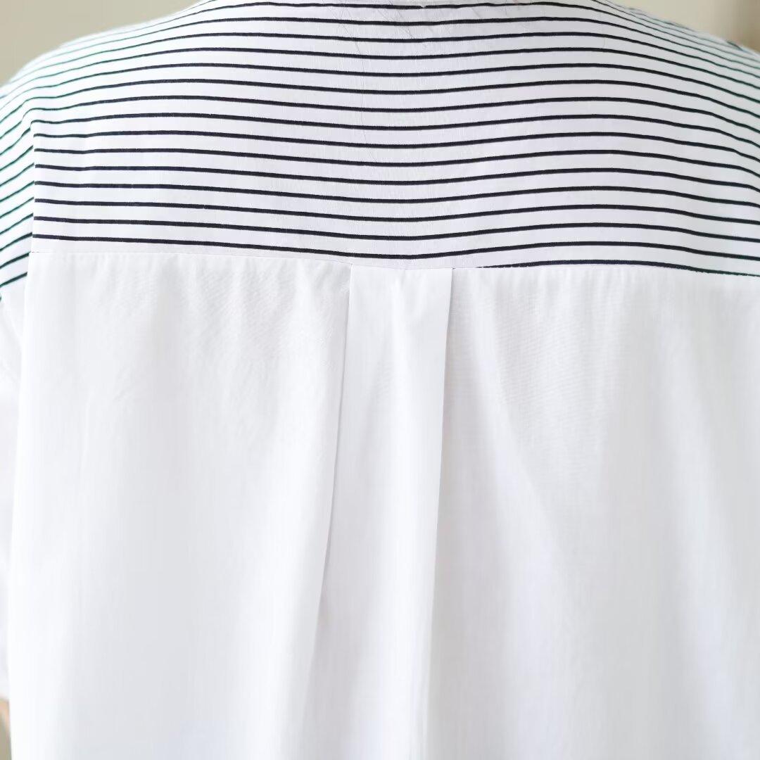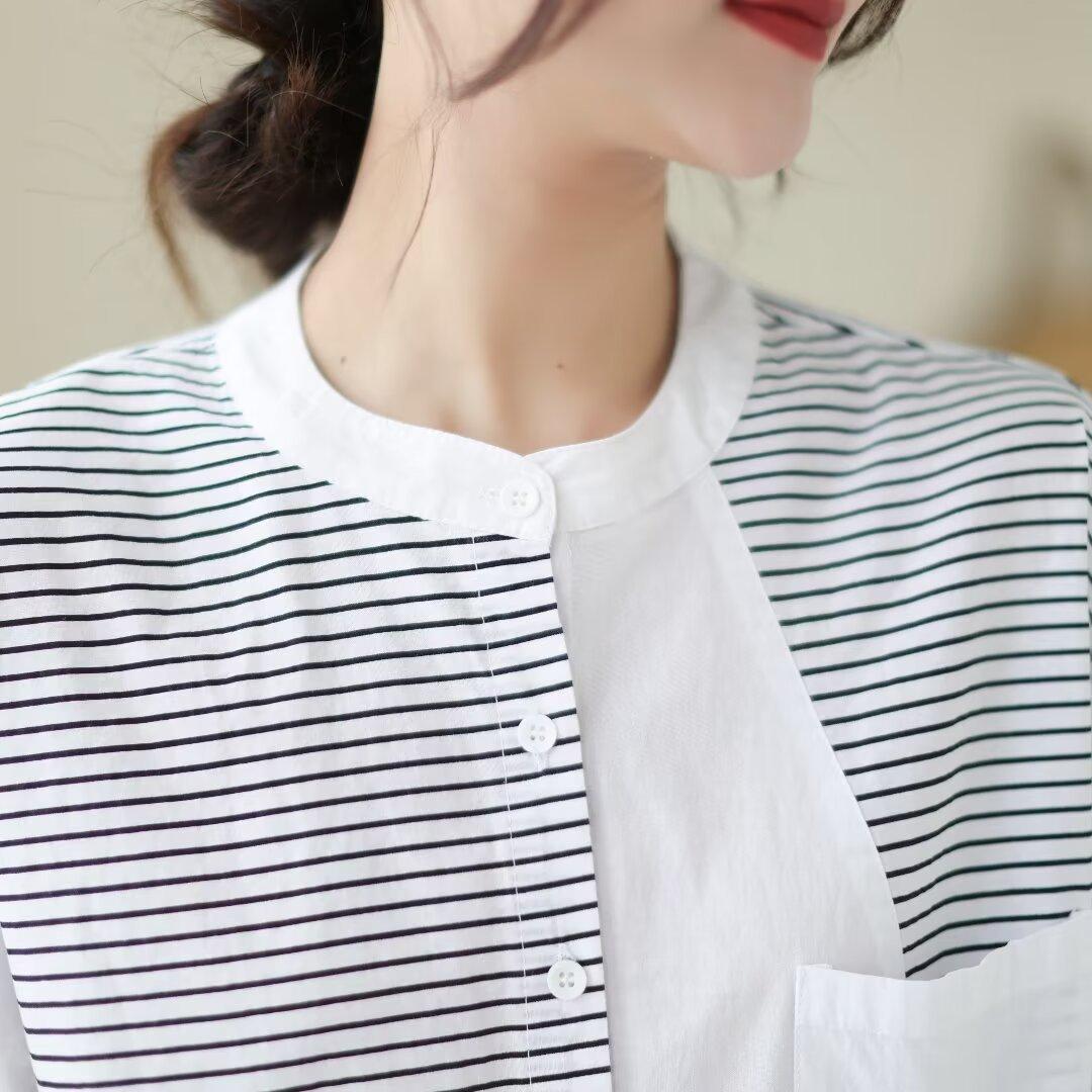 Camisa de rayas blancas con costuras de alta gama para mujer, blusa holgada que cubre la carne, top de moda que combina con todo, verano 2024