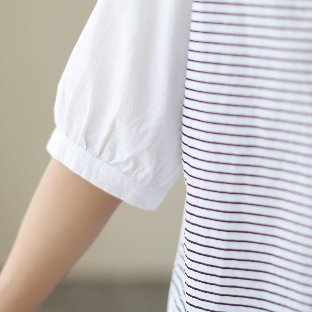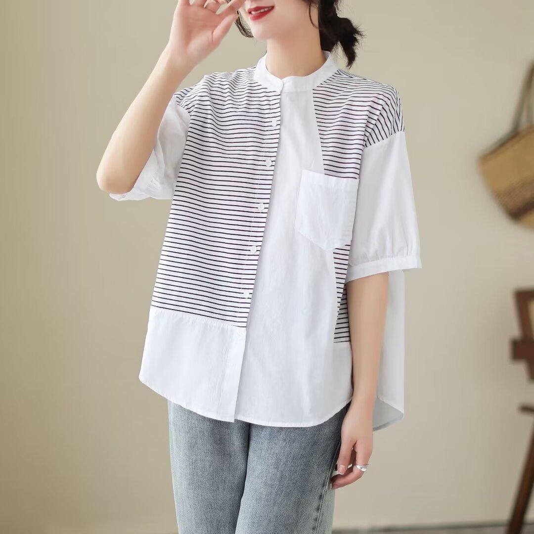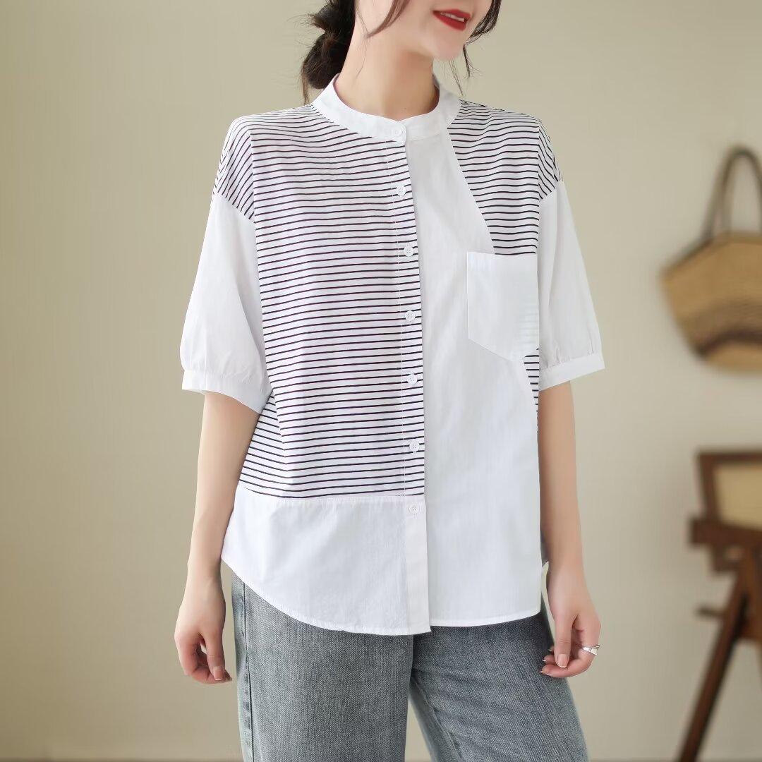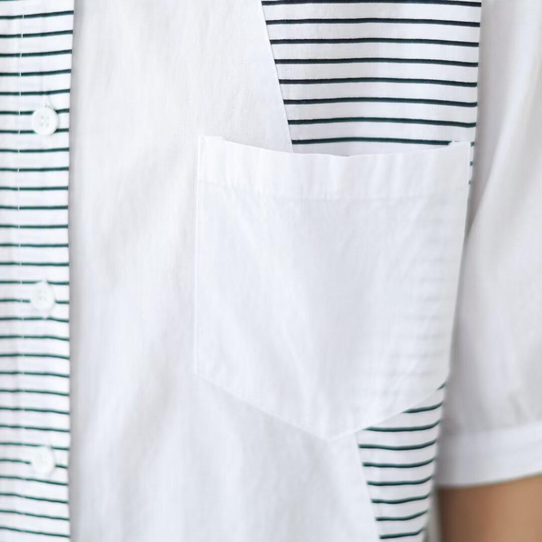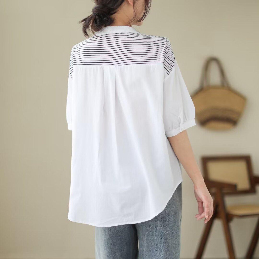 Camisa de rayas blancas con costuras de alta gama para mujer, blusa holgada que cubre la carne, top de moda que combina con todo, verano 2024