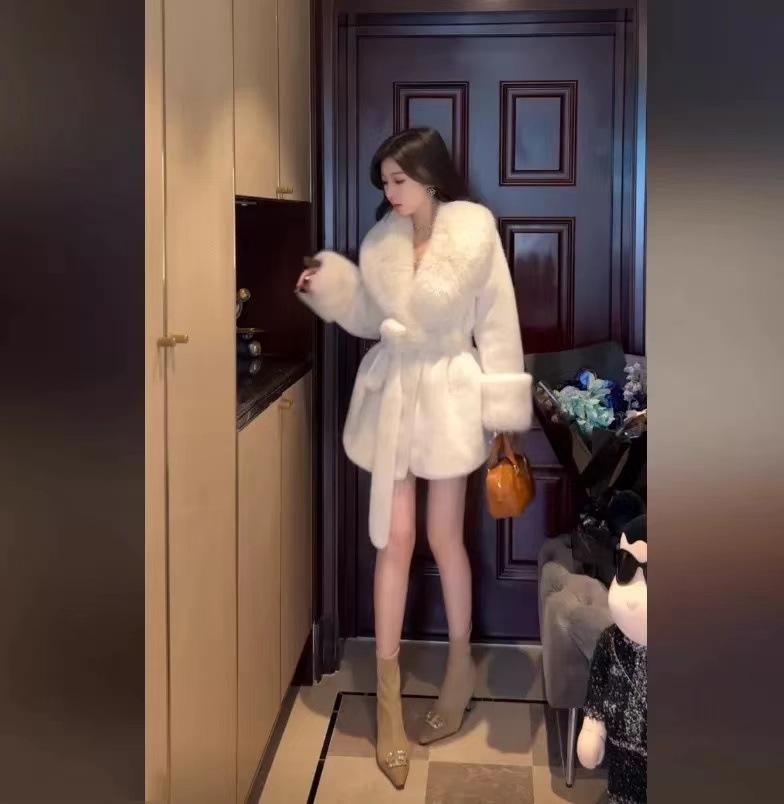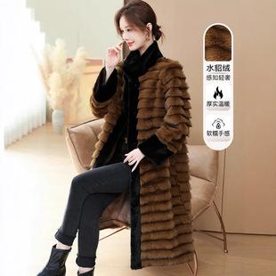 Abrigo de Invierno Ecológico de Visón Sable de Felpa para Mujer, Nuevo Abrigo Corto de Alta Gama de Una Pieza de Piel Sintética