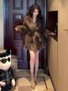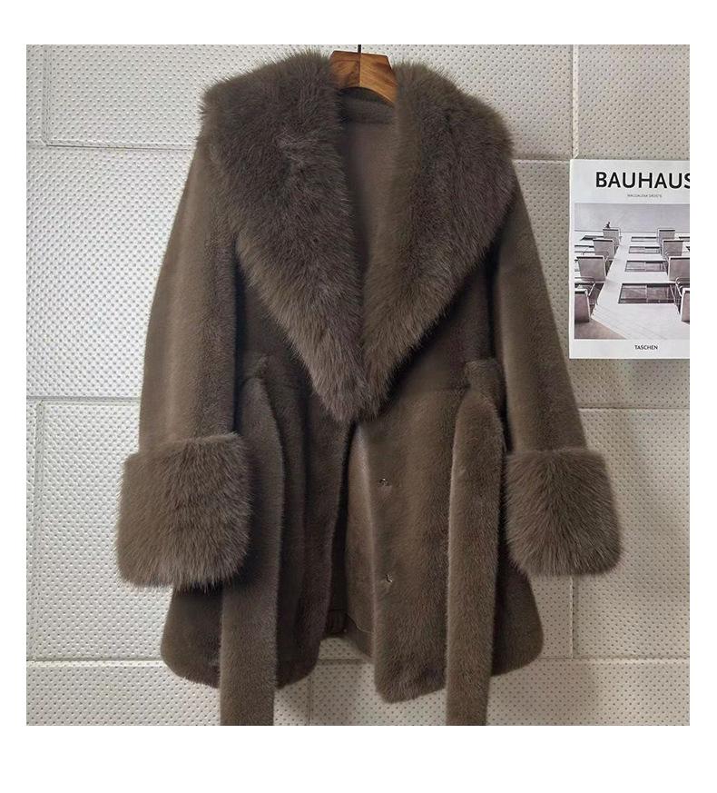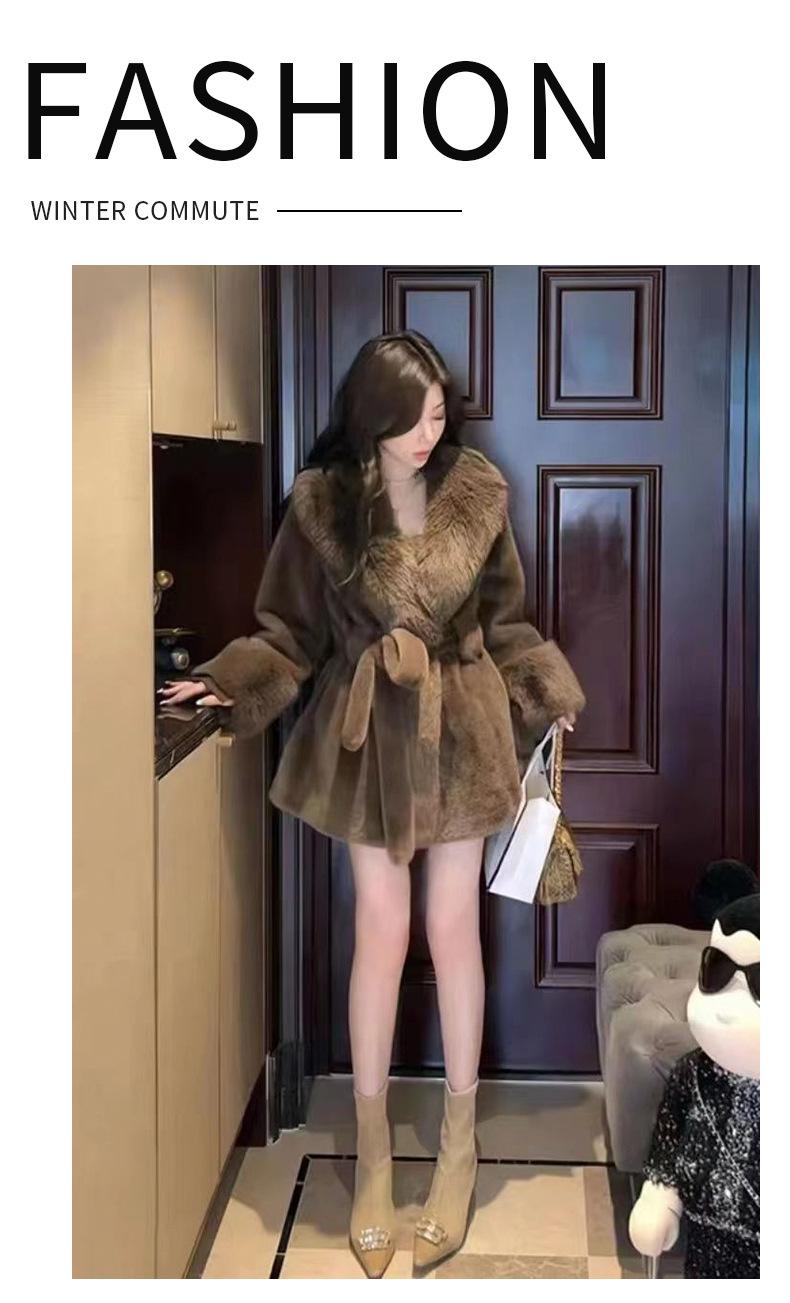 Abrigo de piel 2025 abrigo para mujer temperamento de alta gama invierno cuello de piel grande cálido nuevo estilo color café peludo