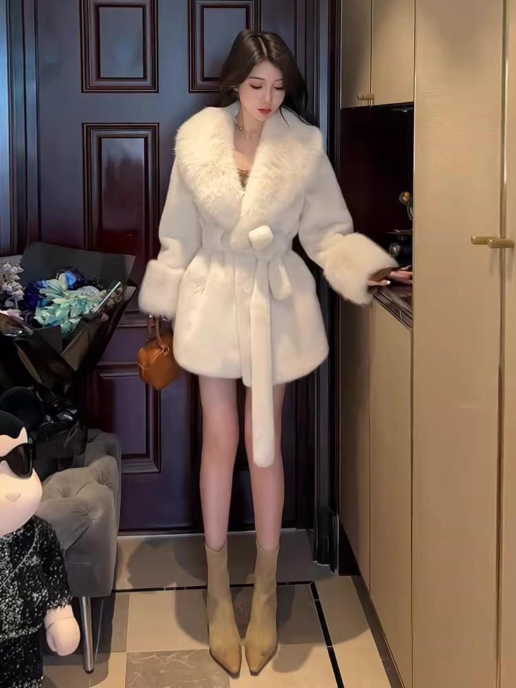 Invierno 2025 Nueva Chaqueta de Cuero Chaleco para Mujer Engrosado Imitación Piel de Zorro Largo Medio de Alta Gama Nuevo Esponjoso