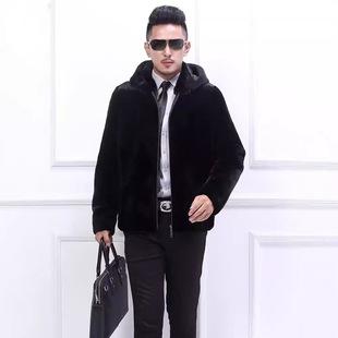 Abrigo chaqueta 2024 talla grande visón plumón forro con capucha para hombre visón entero Haining invierno piel sintética