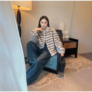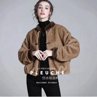 Abrigo de terciopelo visón de imitación para mujer 2025 nuevo estilo chino botones Haining piel integrada corto cuello mao abrigo de piel