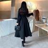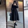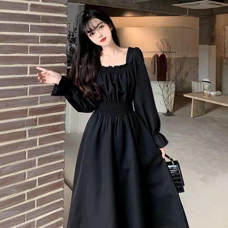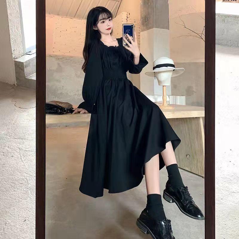 Vestido de otoño para mujer de talla grande, nuevo, retro, elástico, de cintura alta, con cuello cuadrado, falda larga adelgazante suave con temperamento de súper hada