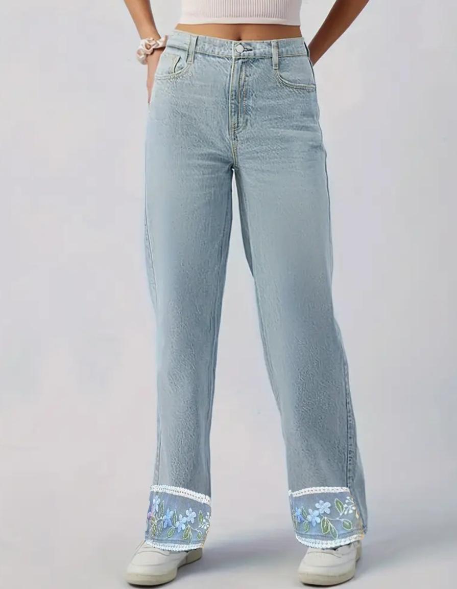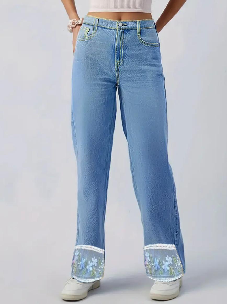 Estación independiente de comercio exterior transfronterizo Amazon europeo y americano para damas lavado al agua coche encaje pantalones de mezclilla