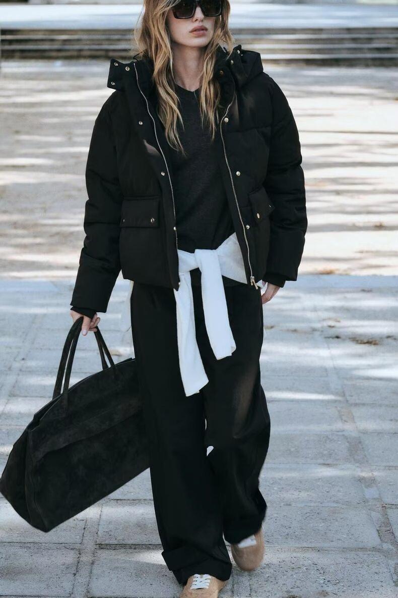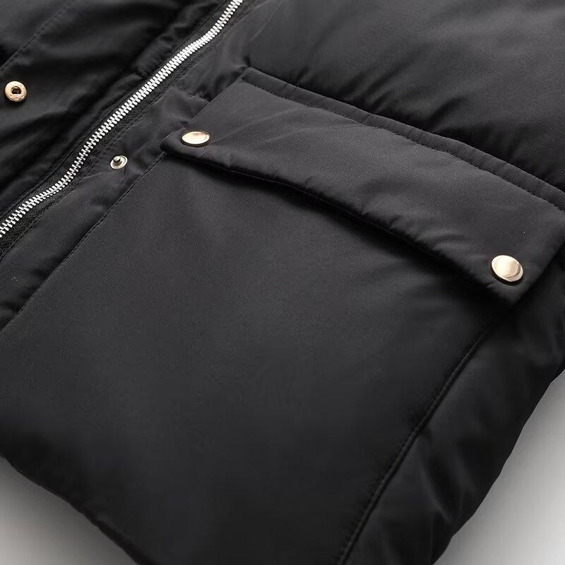 ZA transfronterizo en stock invierno 2024 nuevo moda simple europea y americana para mujer con capucha esponjoso cálido algodón acolchado chaqueta chaqueta abrigo