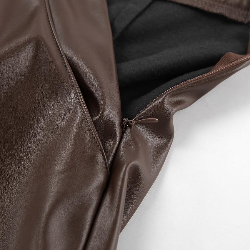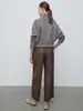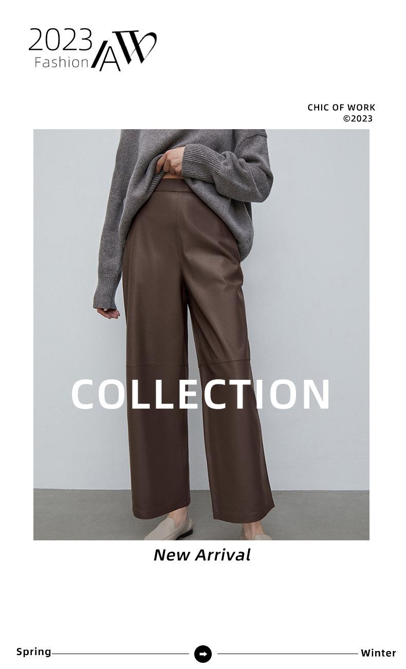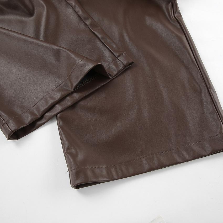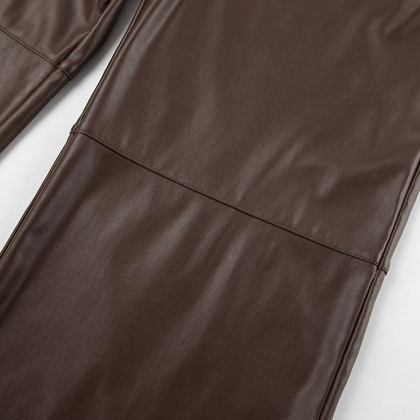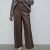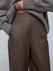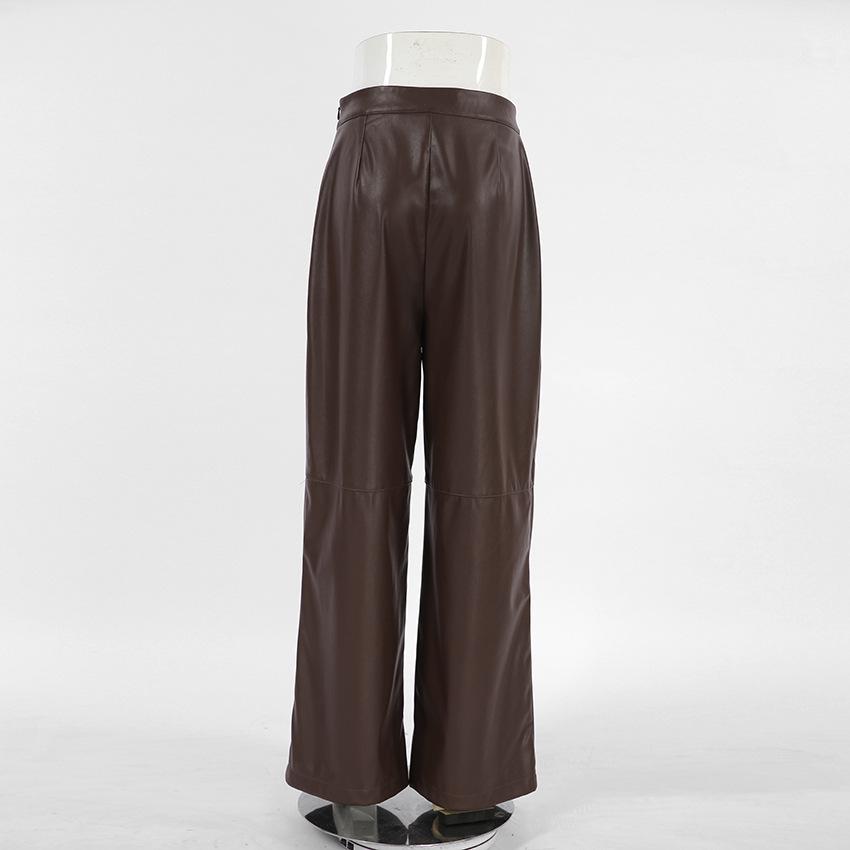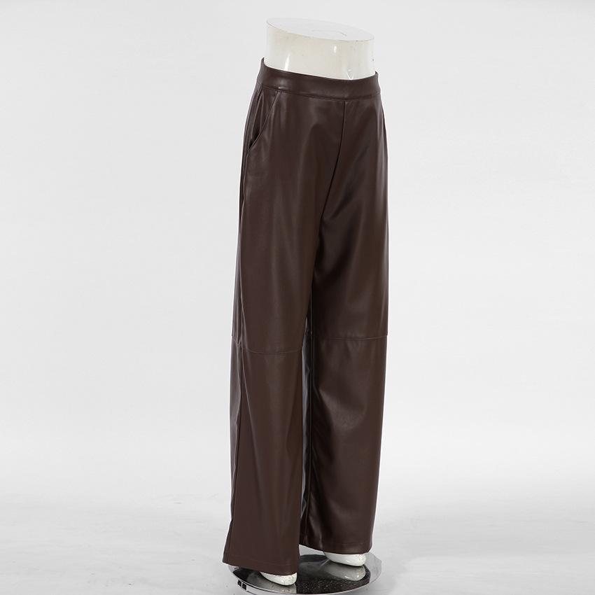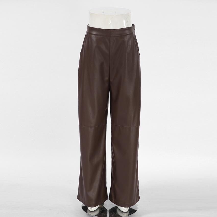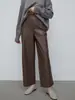 Pantalones rectos de cuero marrón, pantalones casuales de cuero de cintura alta, pantalones de otoño e invierno nuevos de Europa y América 2023, pantalones de viaje de moda para mujer