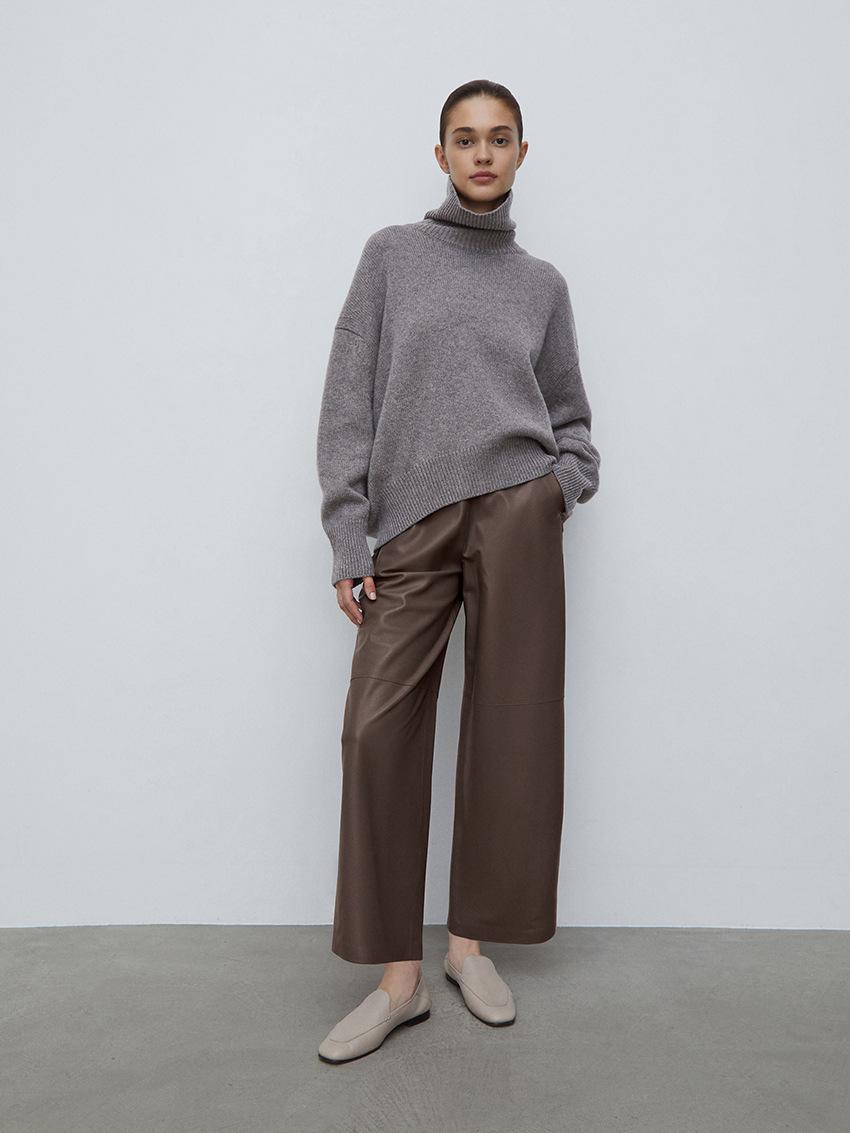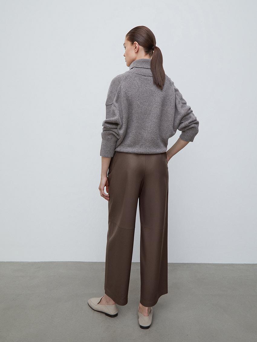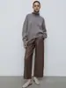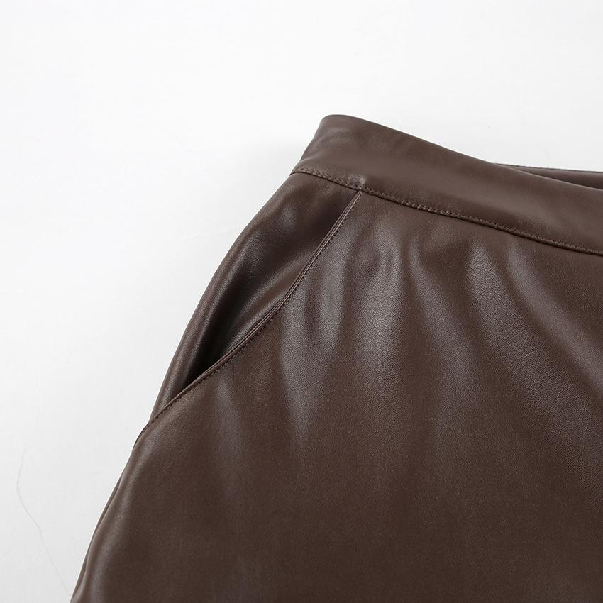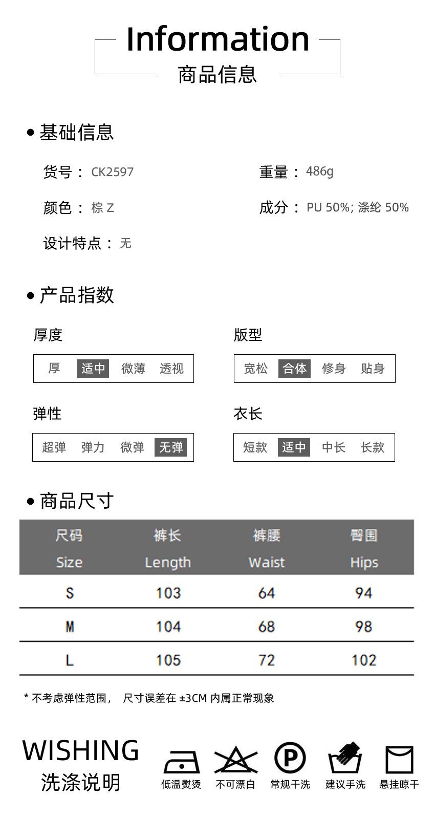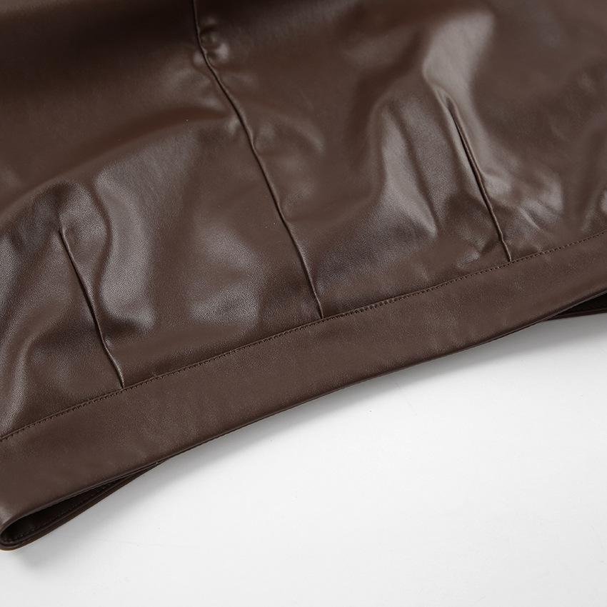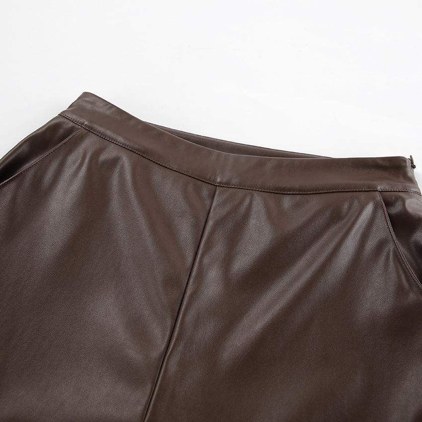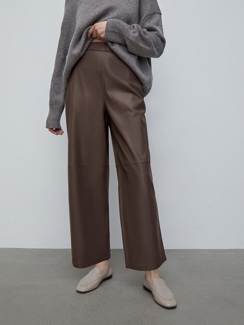 Pantalones rectos de cuero marrón, pantalones casuales de cuero de cintura alta, pantalones de otoño e invierno nuevos de Europa y América 2023, pantalones de viaje de moda para mujer