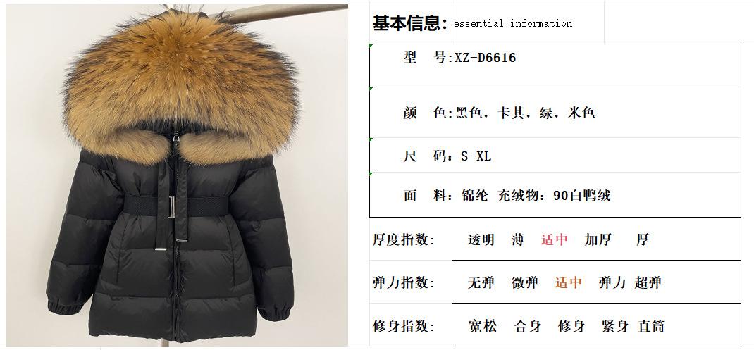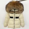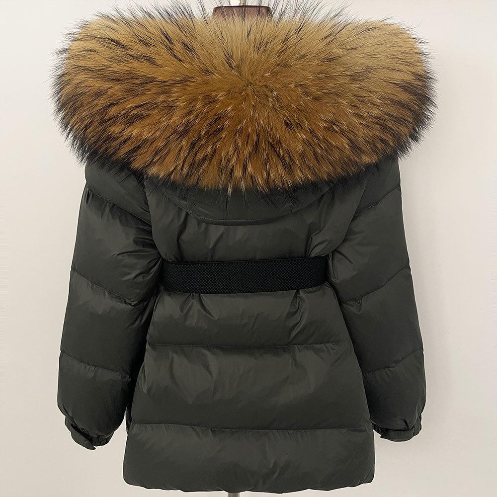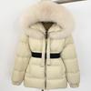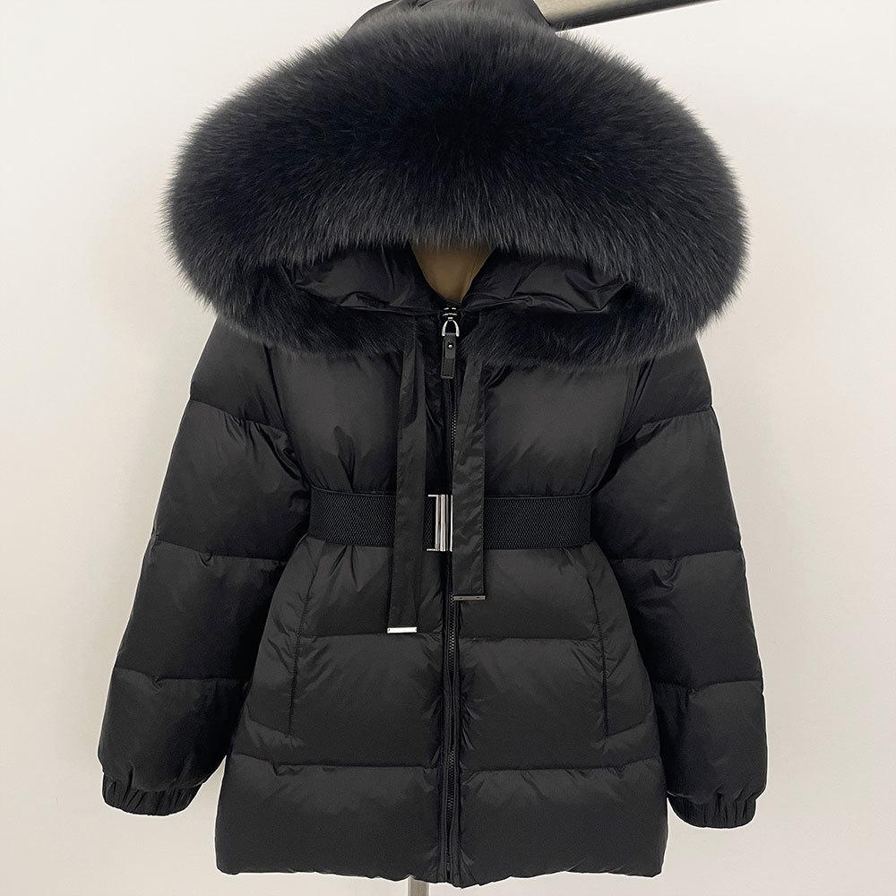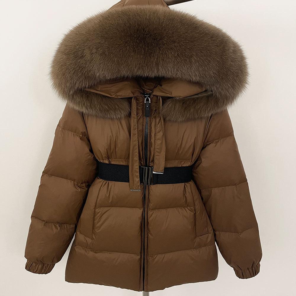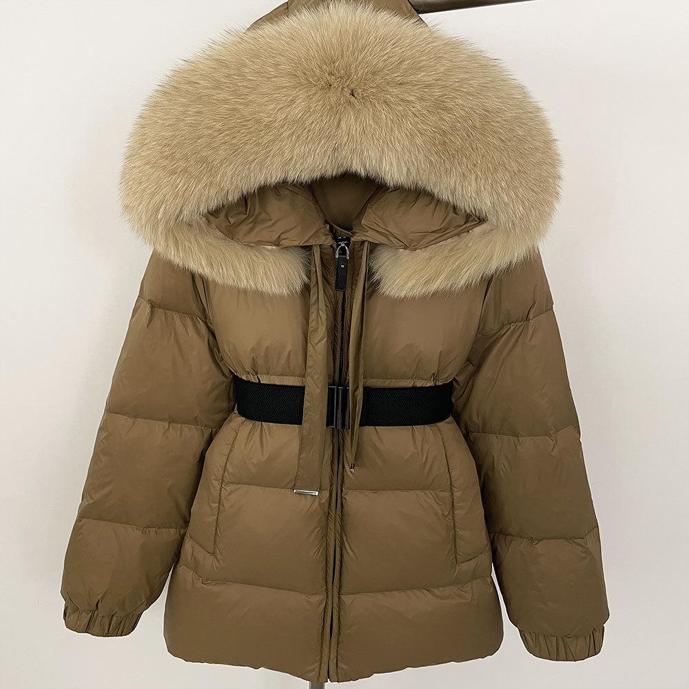 Comercio exterior transfronterizo invierno nuevo plumífero con capucha de alta gama para mujer largo con cintura entallada cálido cuello de piel de zorro real