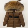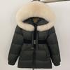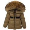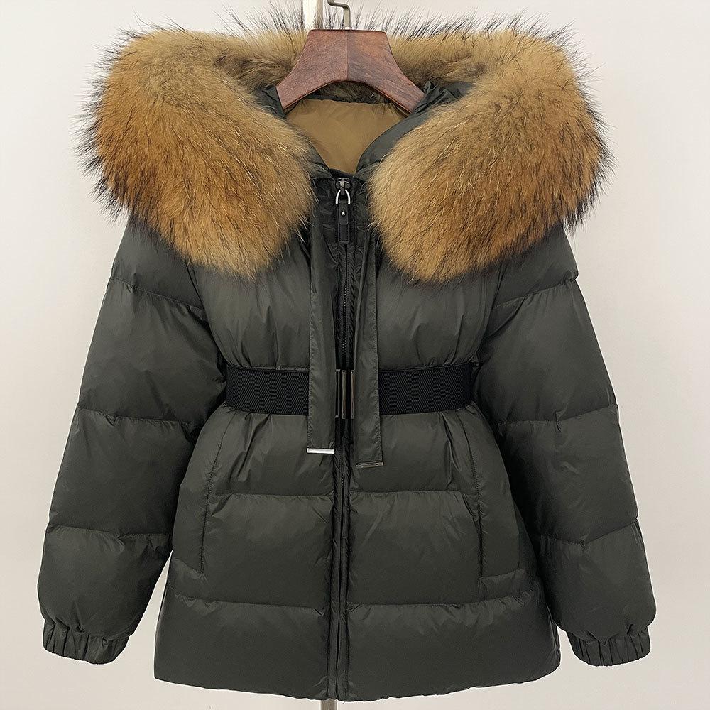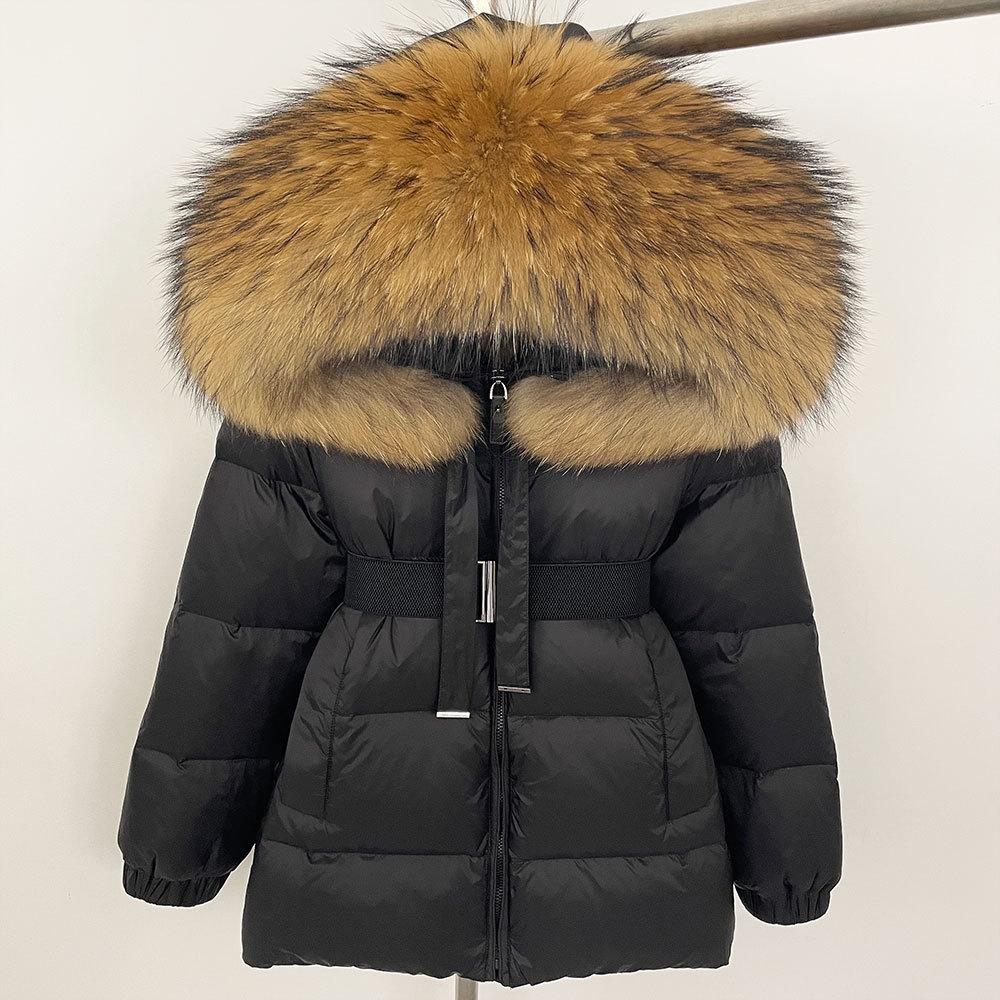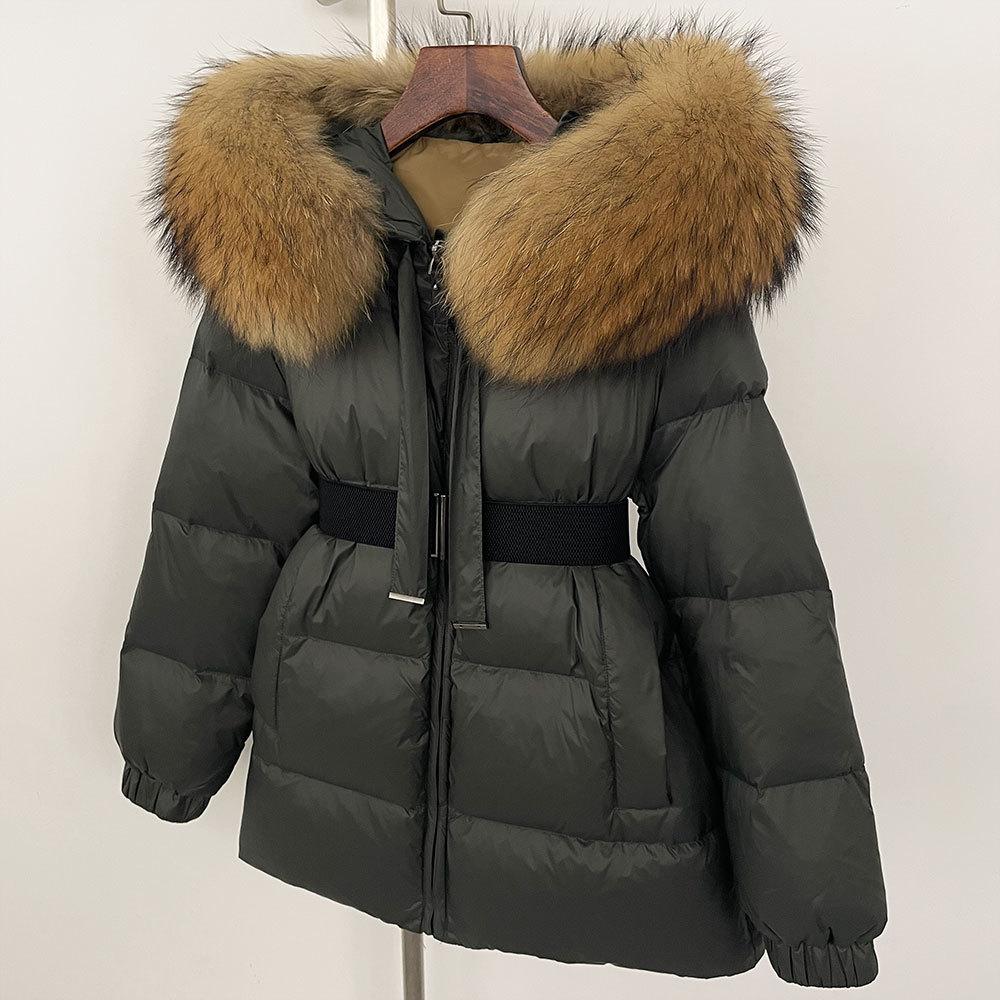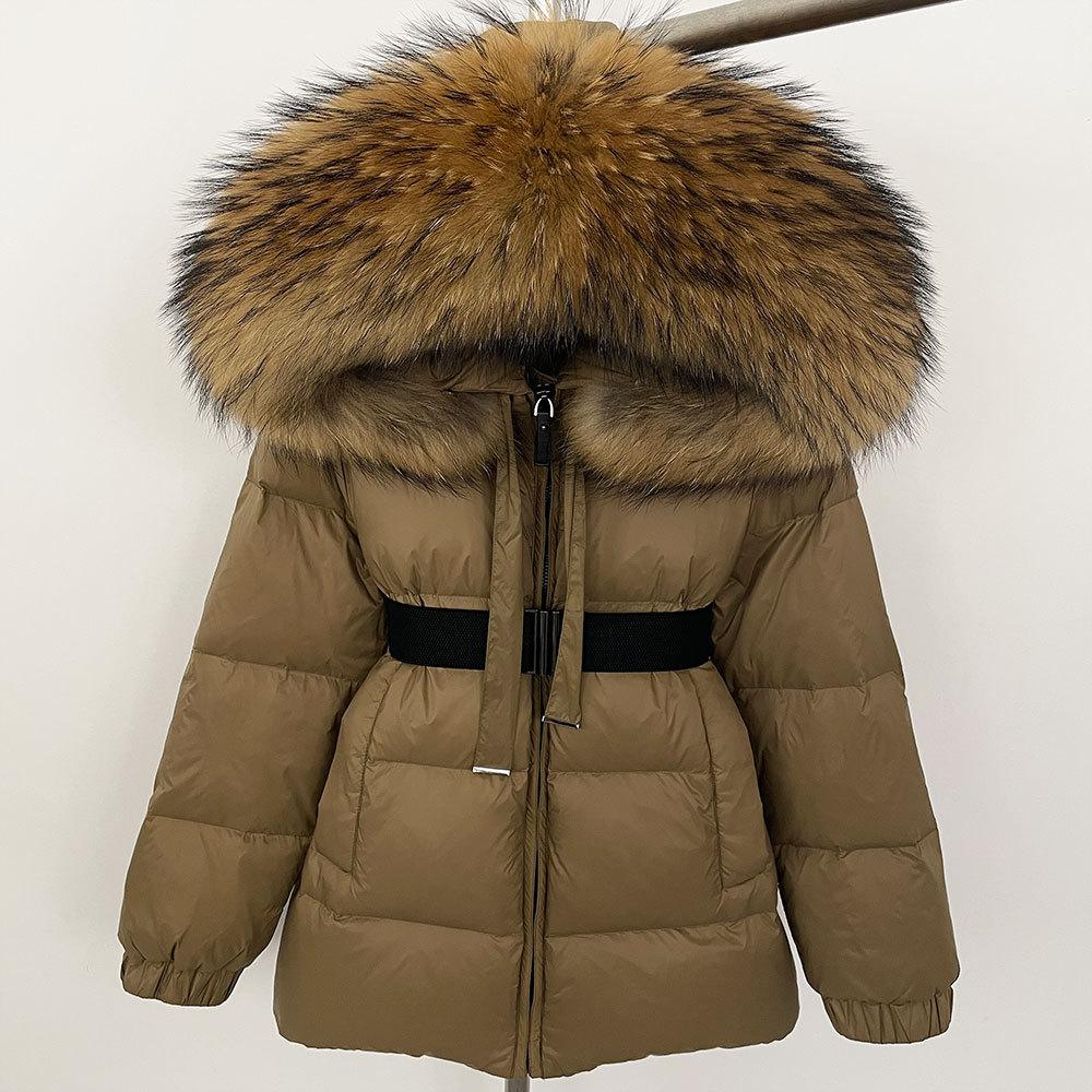 Comercio exterior transfronterizo invierno nuevo plumífero con capucha de alta gama para mujer largo con cintura entallada cálido cuello de piel de zorro real