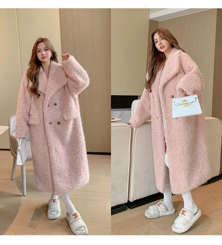 Abrigo de piel de cordero con forro de piel de cordero de talla grande europeo y americano de invierno para mujer