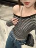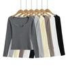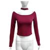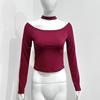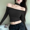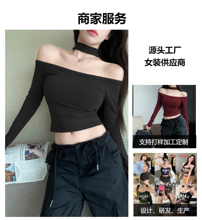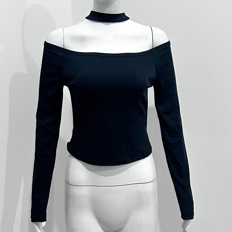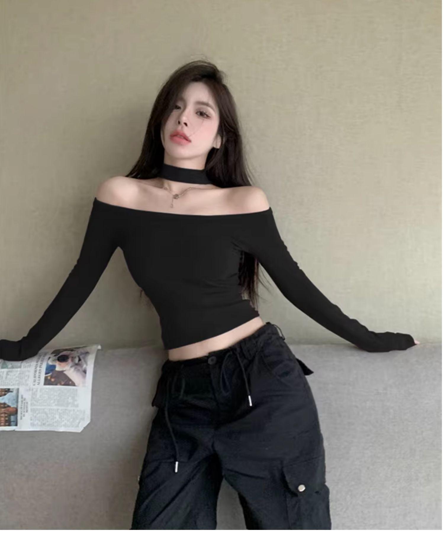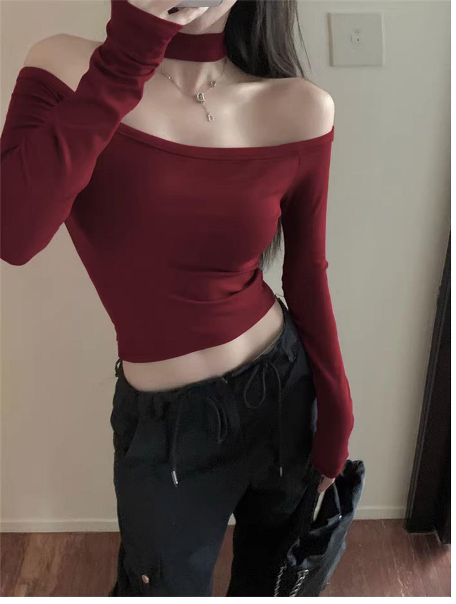 Camiseta base de manga larga con cuello halter y hombros descubiertos para chica sexy, otoño, sexy, delgada, corta, con temperamento, para mujer