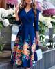 Vestido primavera/verano 2023 ropa de mujer transfronteriza Amazon Comercio exterior europeo y americano nuevo escote en V cintura con cordones falda de manga media