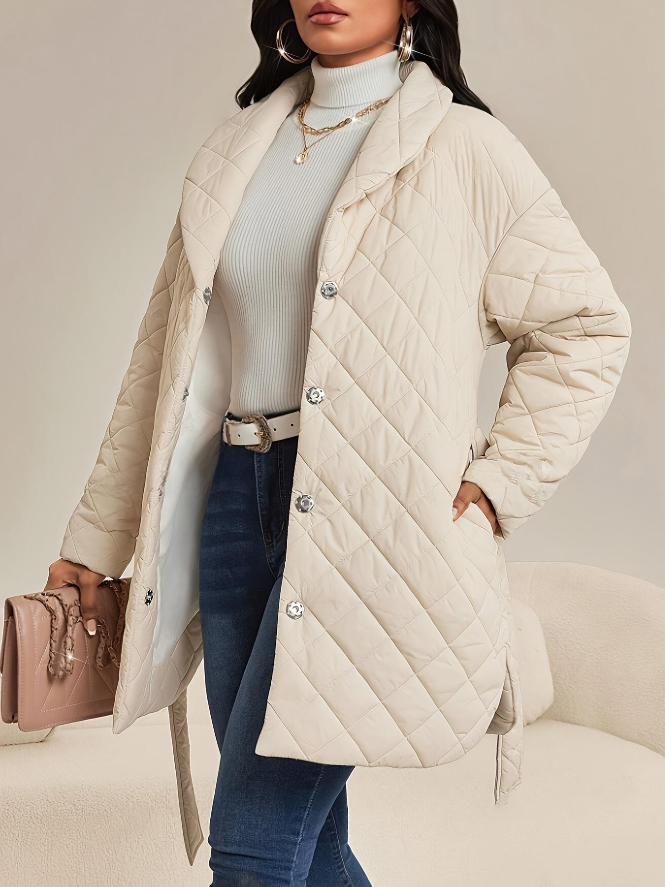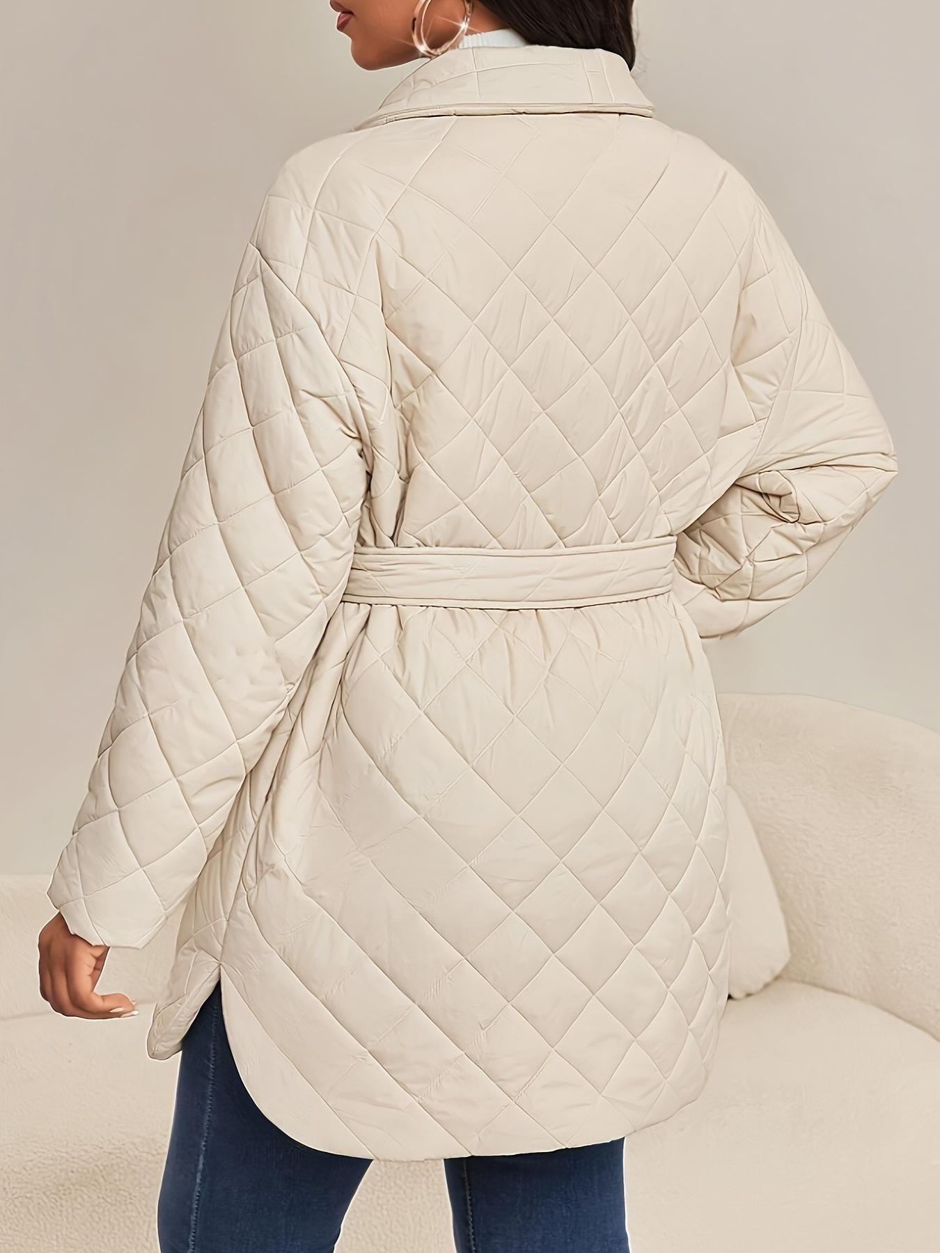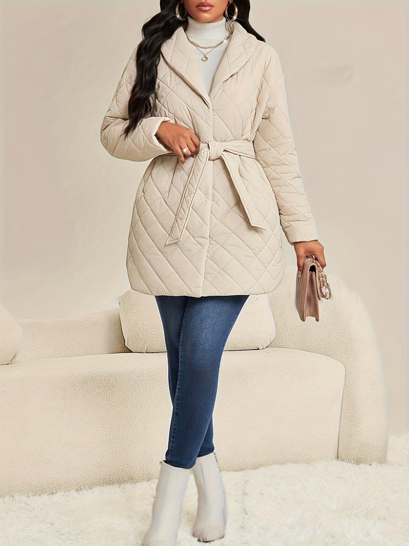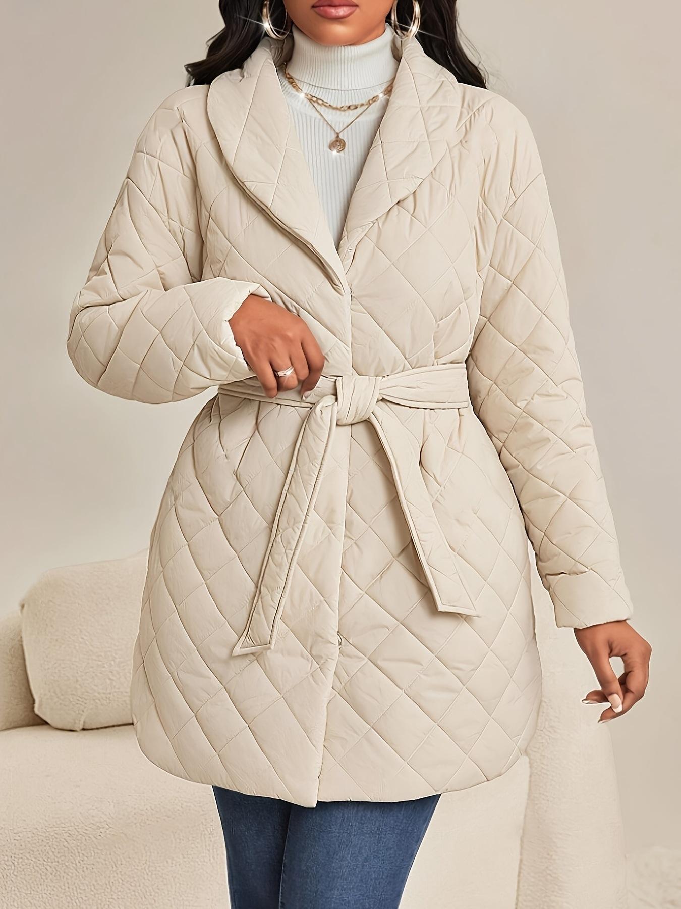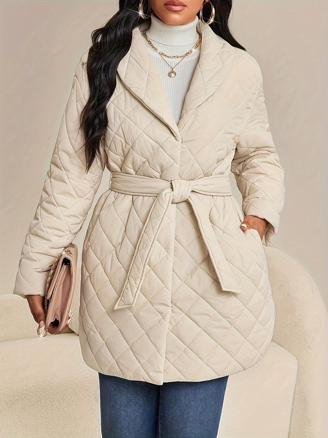 Chaqueta acolchada de algodón para mujer, versión suelta, con cinturón, a cuadros de diamantes, temperamento de marca de moda transfronteriza de otoño e invierno de 2024