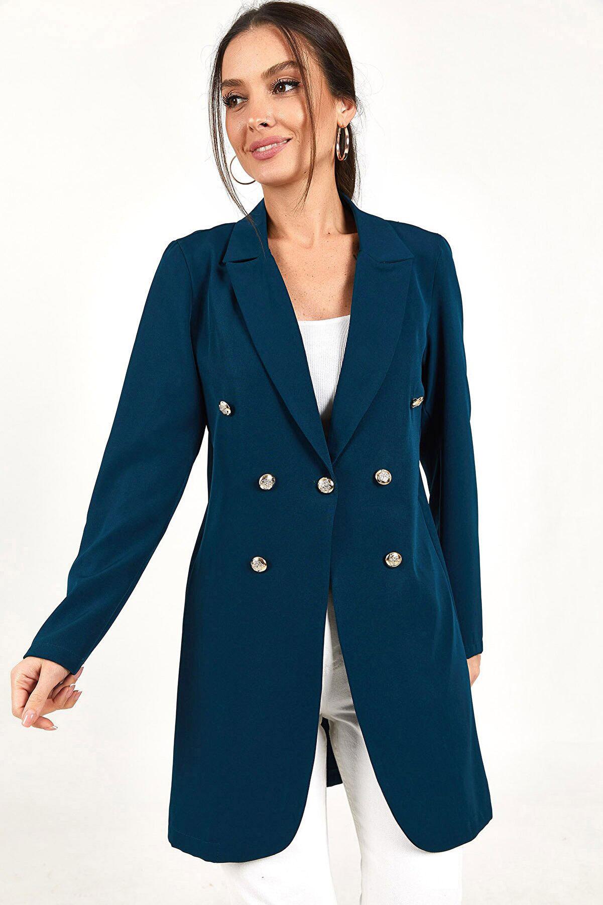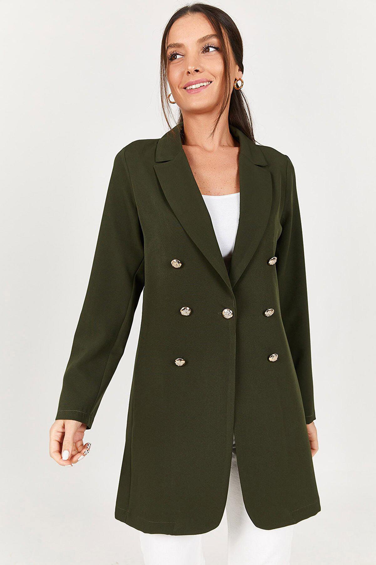 Sitio independiente transfronterizo Ropa de mujer europea y americana 2023 nuevo traje profesional OL casual de color sólido de doble botonadura de longitud media