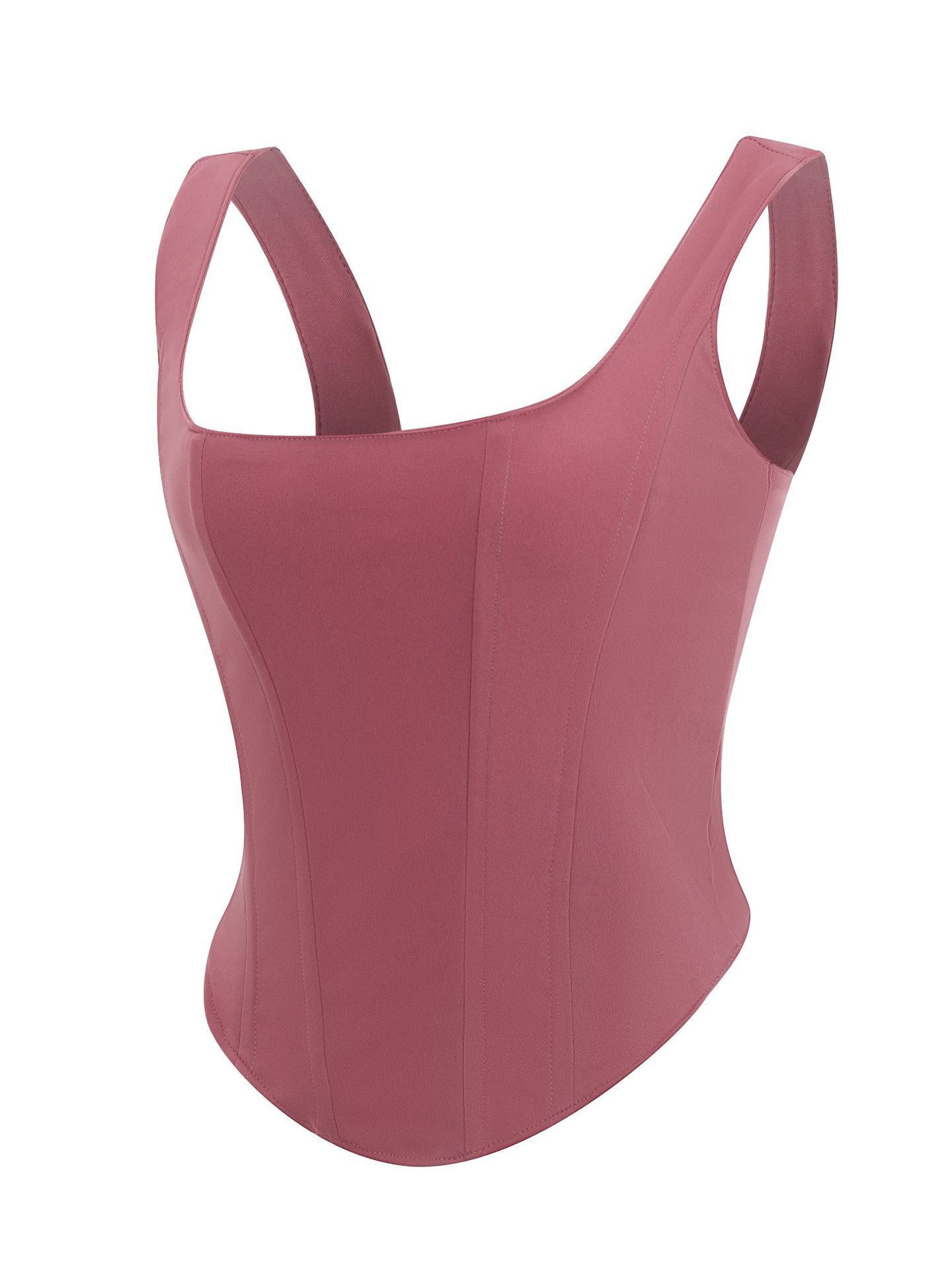 Comercio exterior transfronterizo entre Europa y Estados Unidos 2024, nuevo sujetador de espiga de pescado sexy de color sólido, cuello cuadrado, sin espalda, chaleco para mujer