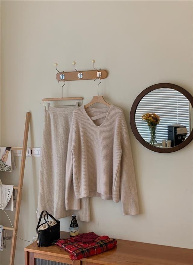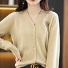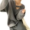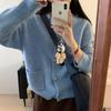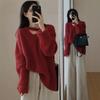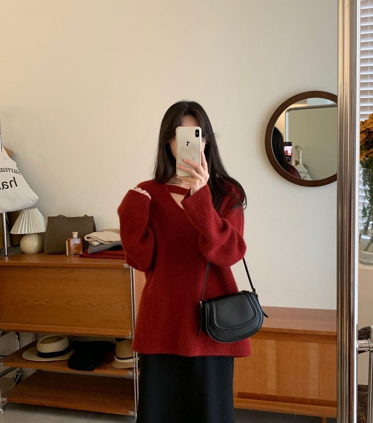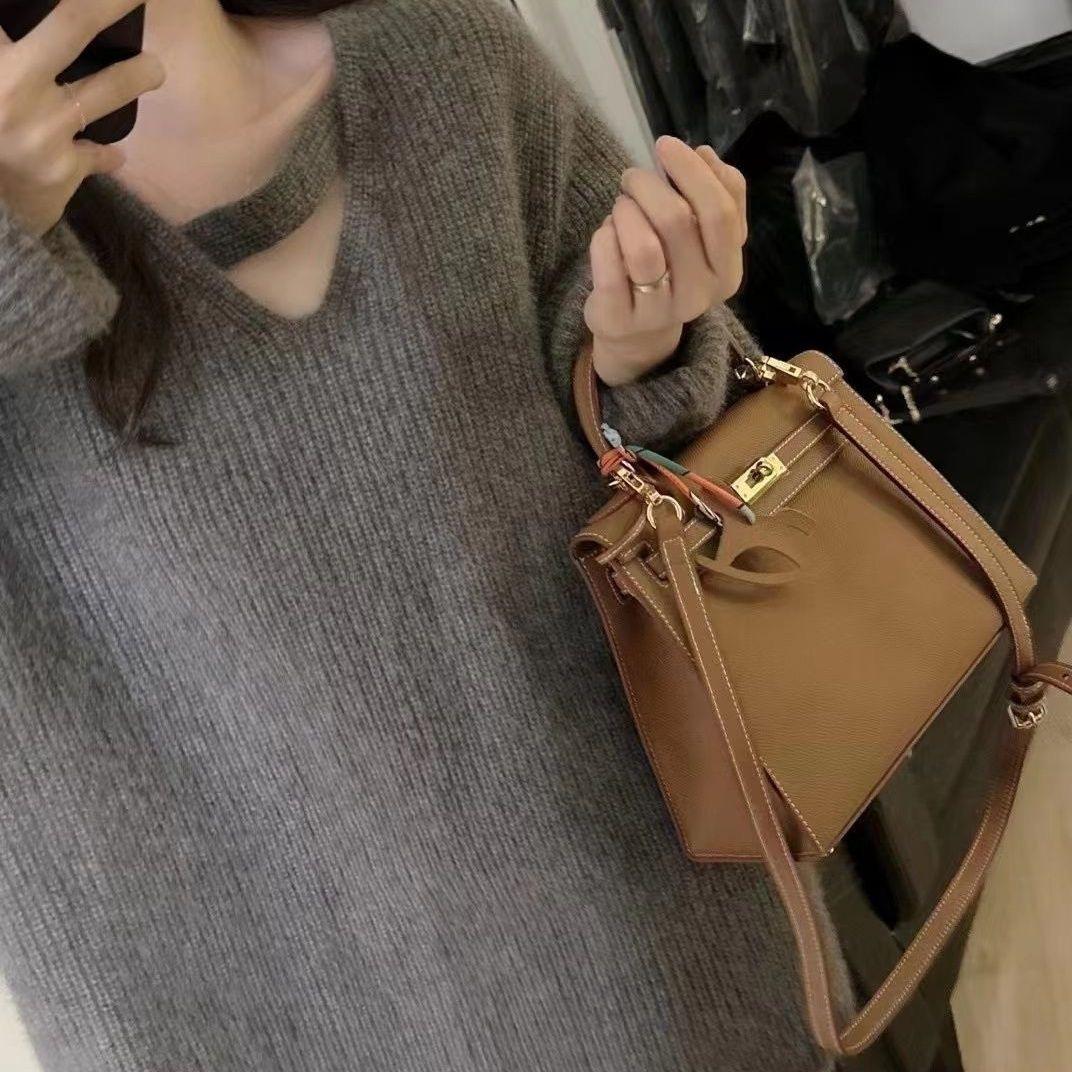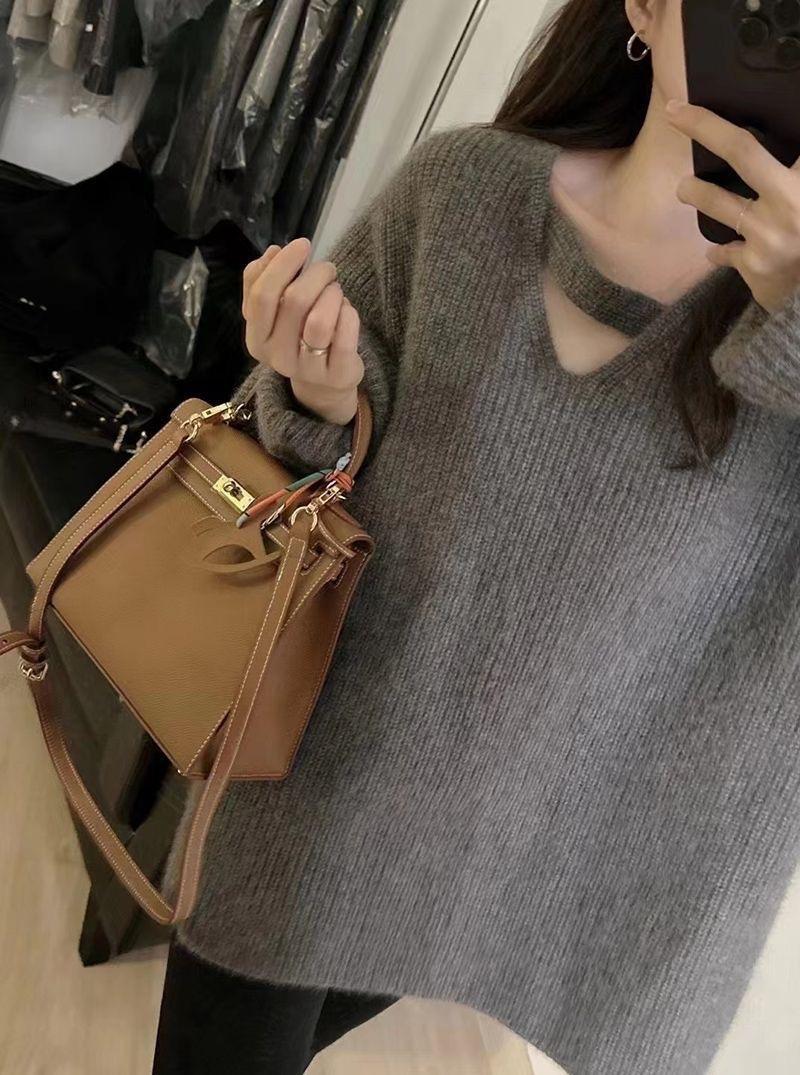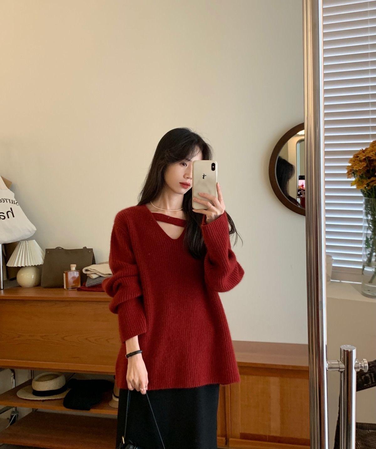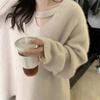 Suéter holgado de color liso con cuello en V, diseño de nicho, estilo Hong Kong, retro, elegante, combinable, otoño e invierno de 2024