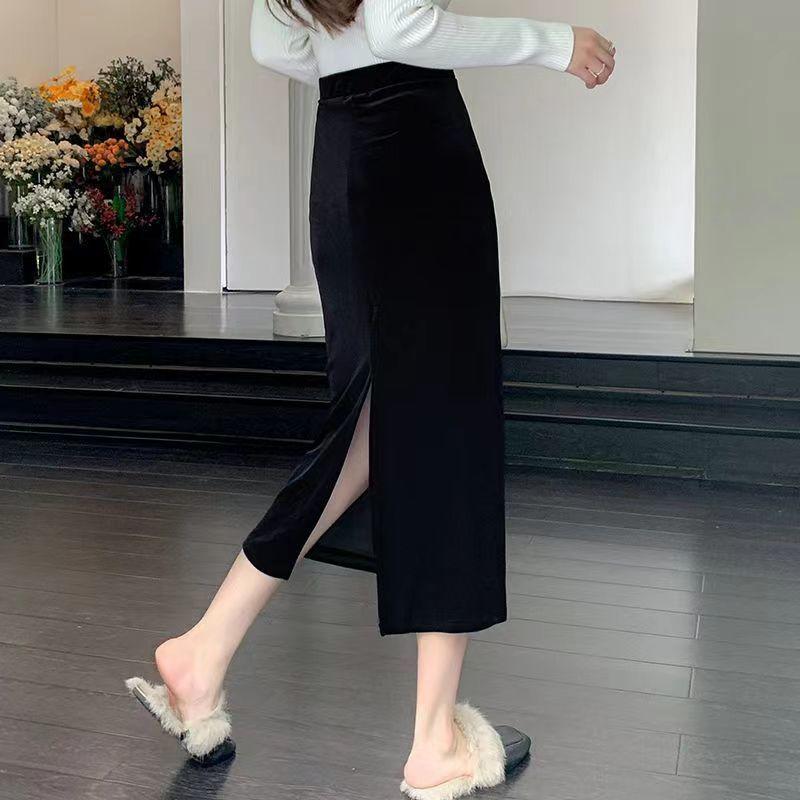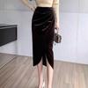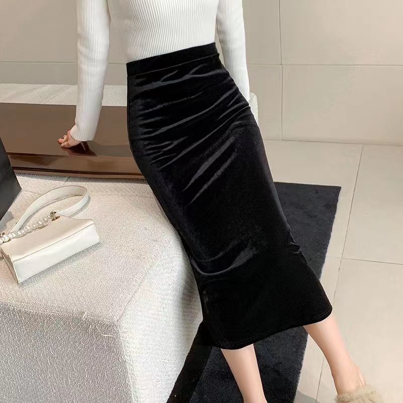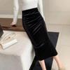 Primavera y Otoño 2024 Nueva Falda de Terciopelo Dorado Falda Recta a la Cadera para Mujer Falda Adelgazante de Corte Ajustado para Petite