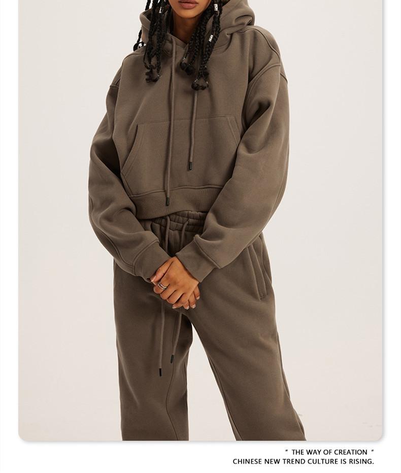 Otoño e invierno 2023 Amazon nueva ropa de mujer transfronteriza con capucha cuello redondo manga larga conjunto de dos piezas traje top suéter para mujer