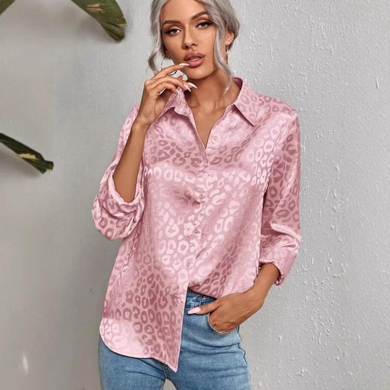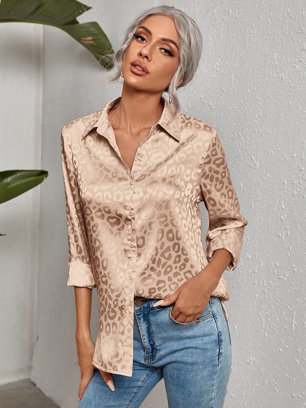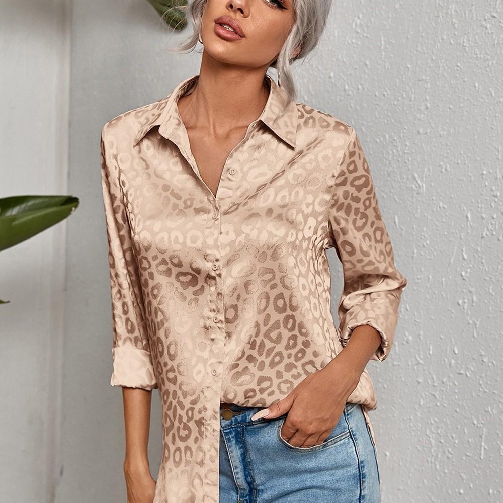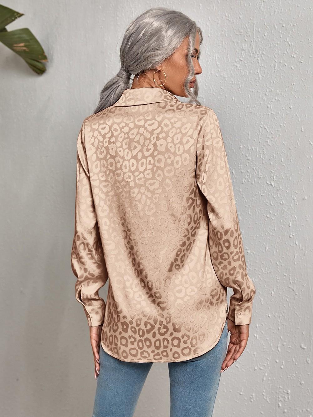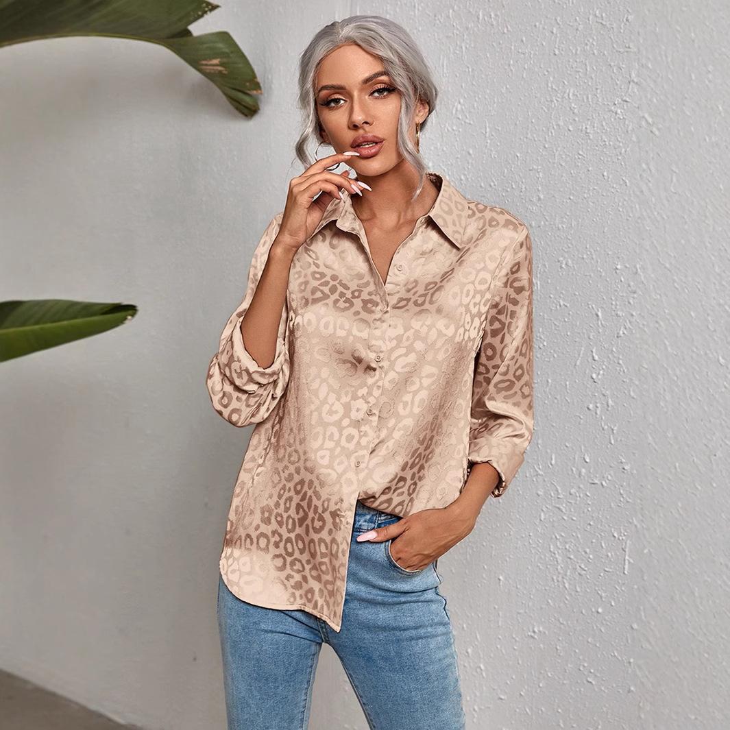 Camisa de manga larga con estampado de leopardo y solapa con botones abiertos para mujer, estilo transfronterizo de Europa y Estados Unidos, primavera y verano 2025