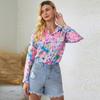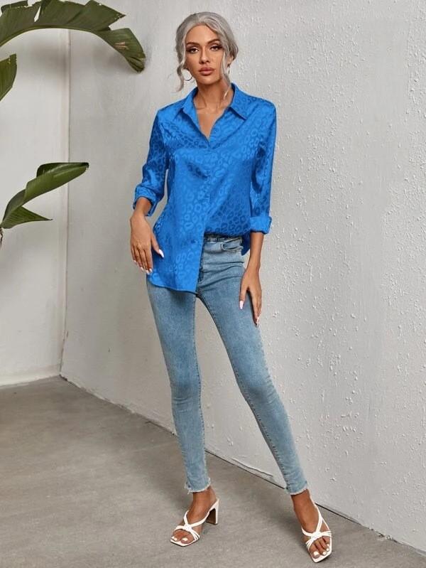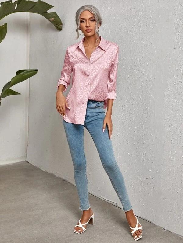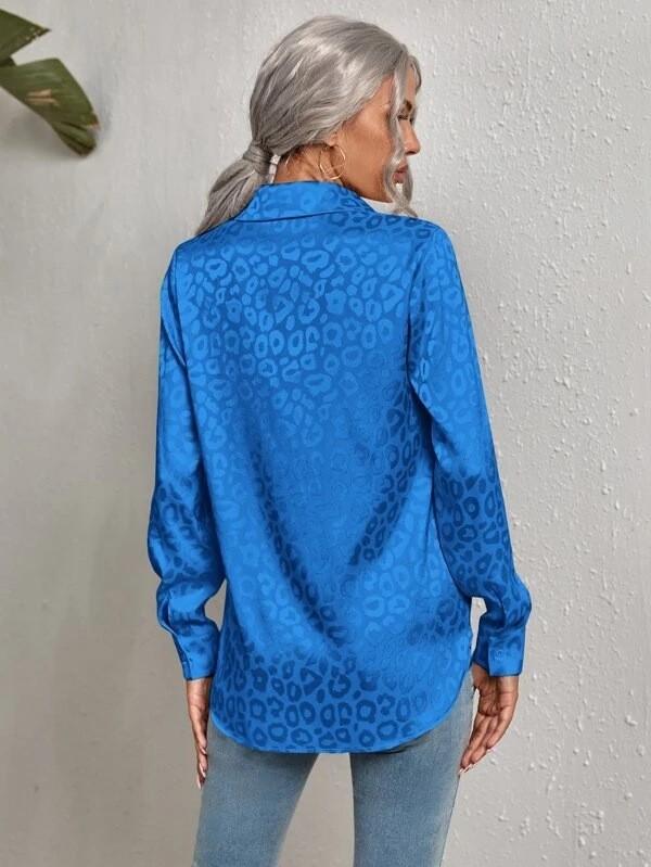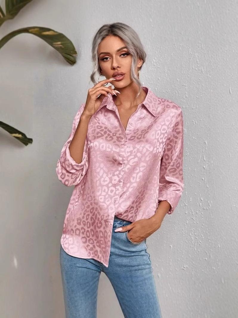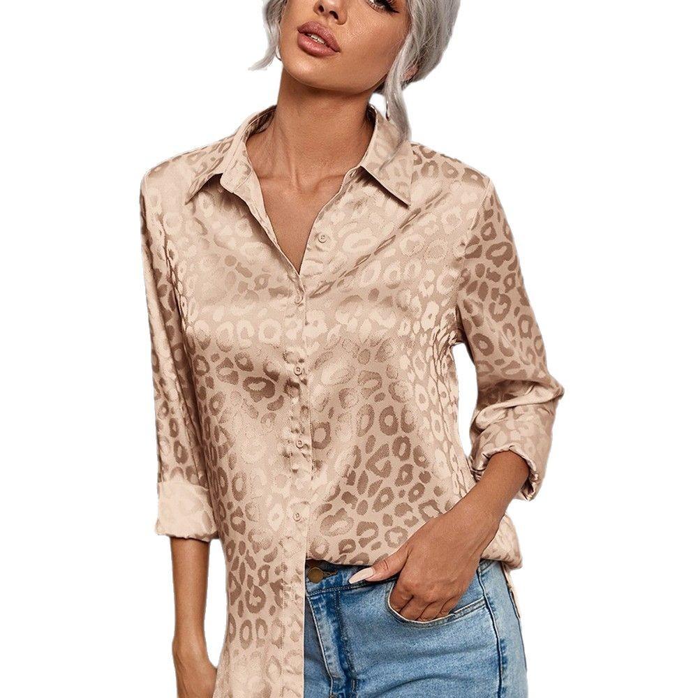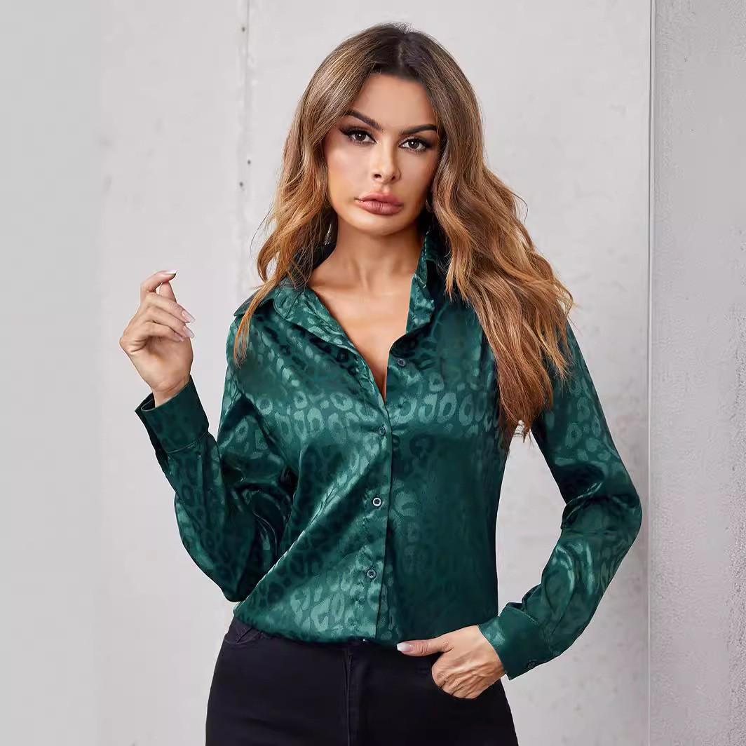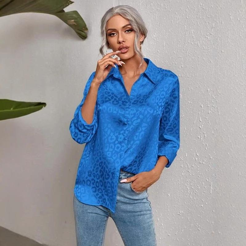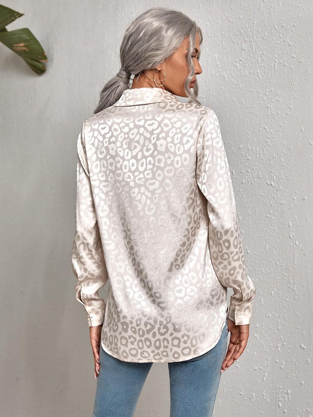 Camisa de manga larga con estampado de leopardo y solapa con botones abiertos para mujer, estilo transfronterizo de Europa y Estados Unidos, primavera y verano 2025