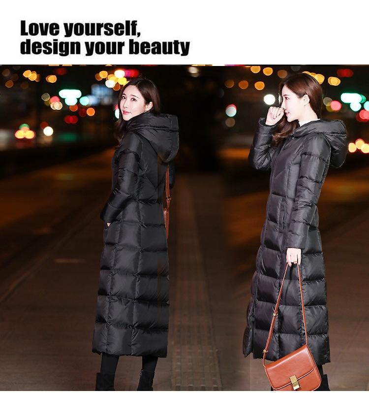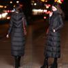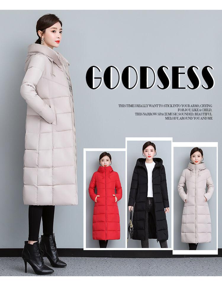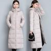 Chaqueta de algodón plumífero de estilo caliente fuera de temporada 2021 nuevo abrigo largo de algodón grueso para mujer con corte ajustado sobre la rodilla chaqueta de invierno acolchada de algodón