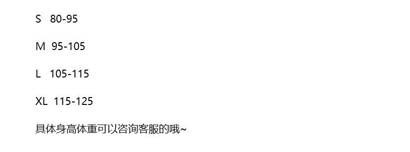 S Suggested 40.00 kg-47.50 kg, M Suggested 47.50 kg-52.50 kg, l Recommended 52.50 kg-57.50 kg, XL Recommended 57.50 kg-62.50 kg
