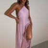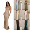 Vestido elegante de satén sin mangas, ajustado, con cuello en V, espalda descubierta, estilo europeo y americano, con cola de pez y cadera.