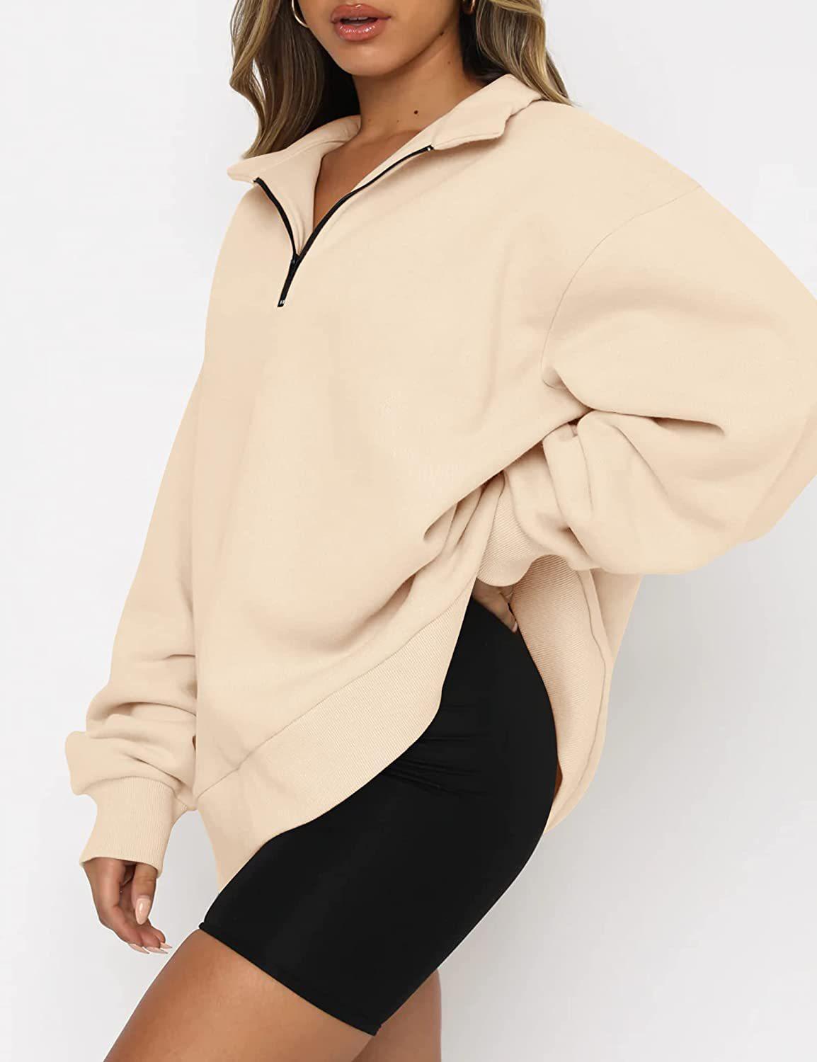 Sudadera de manga larga con cremallera media para mujer, estilo casual, otoño e invierno 2023, estilo Amazon, para mujer, estilo europeo y americano