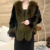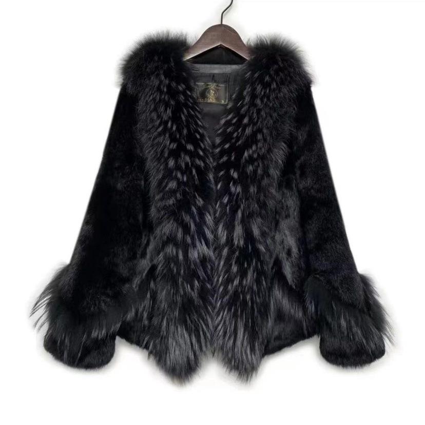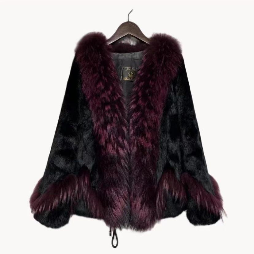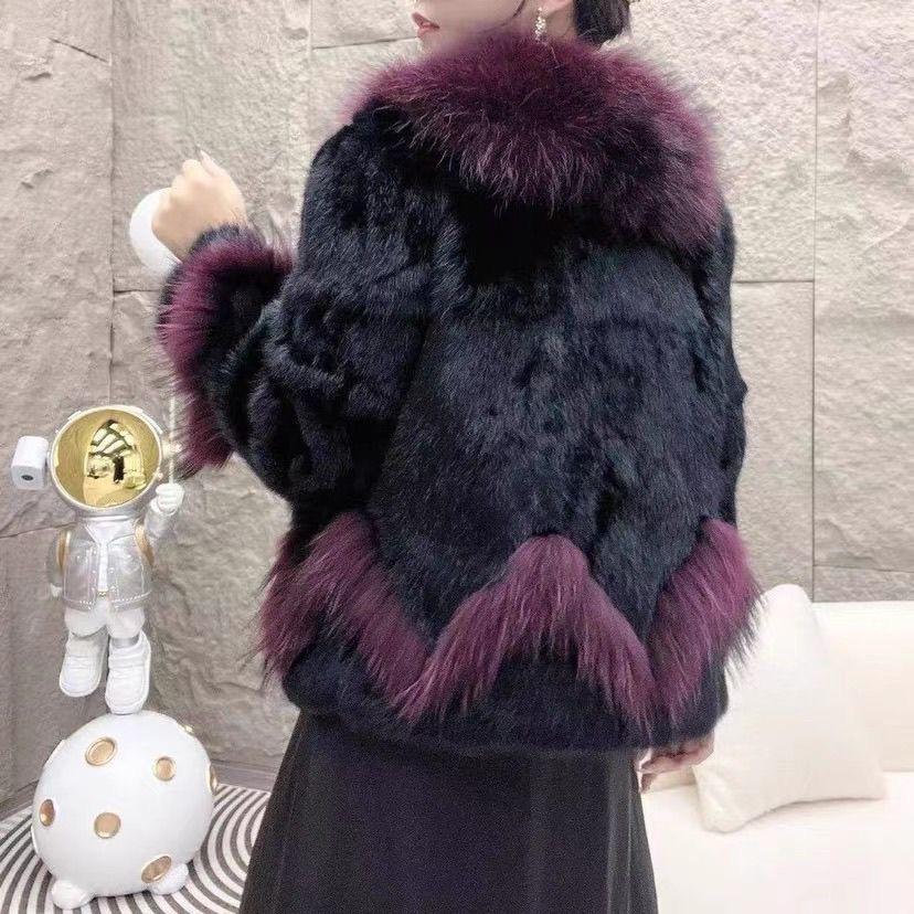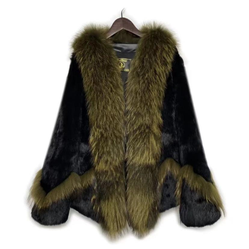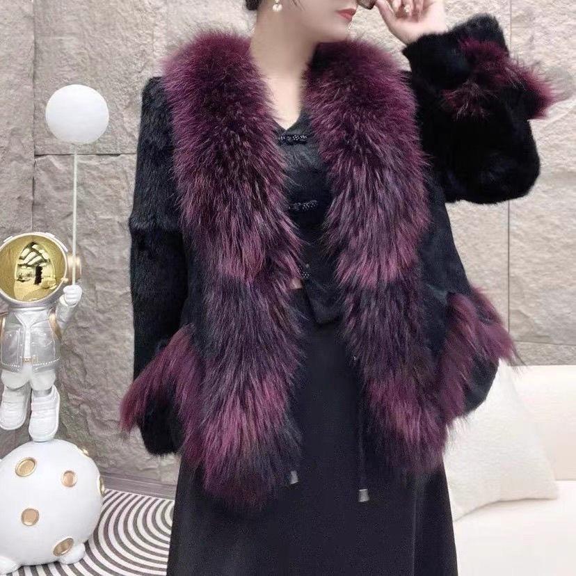 100% piel auténtica, piel entera, versión entera, piel de conejo, prendas de vestir exteriores, tapeta de piel de mapache para mujer, Haining 2024, nuevas prendas de vestir exteriores de piel