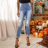 Europa y Estados Unidos estación independiente transfronteriza Amazon comercio exterior lavado borde áspero pantalones vaqueros de mezclilla para damas