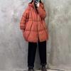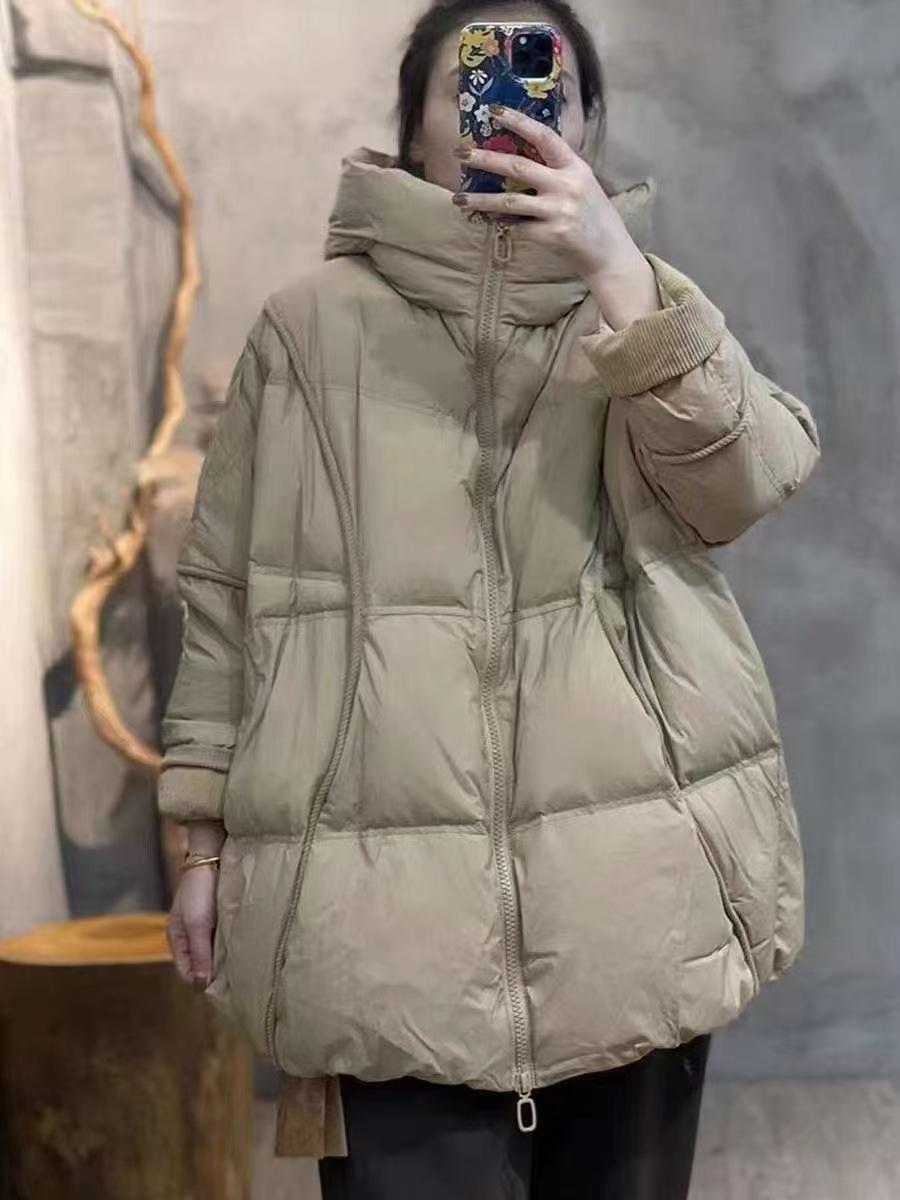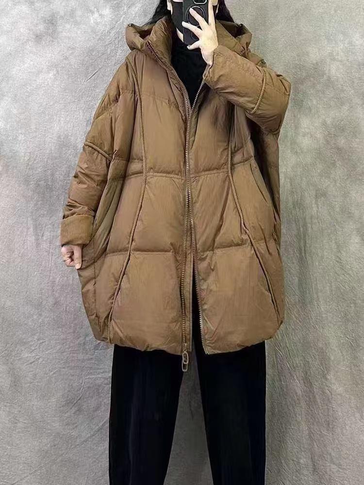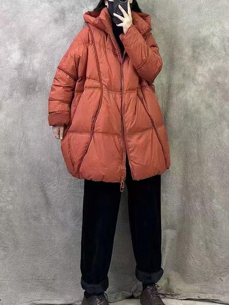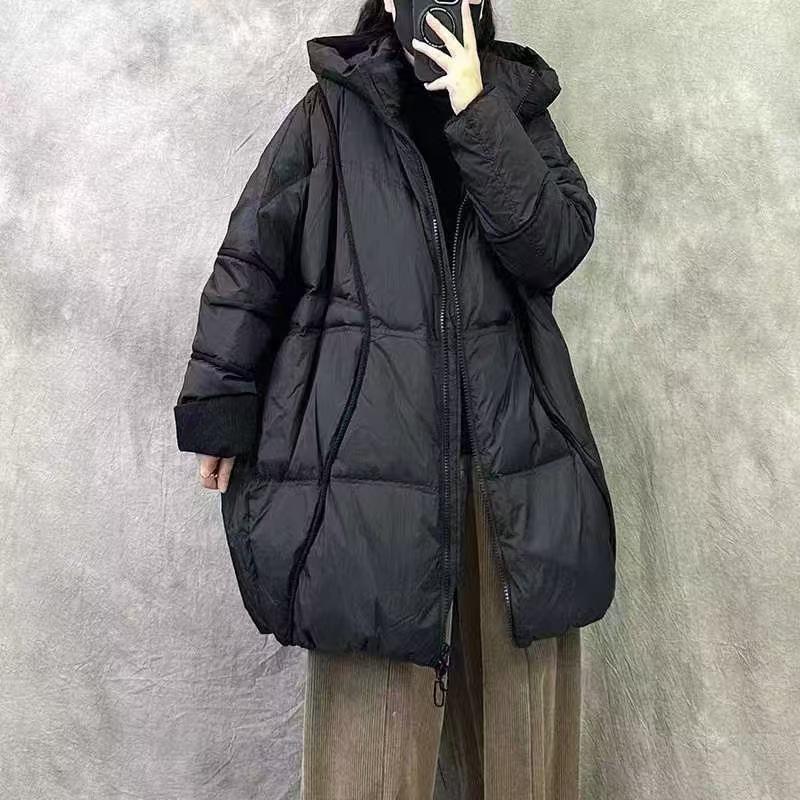 Chaqueta de plumón blanca de color liso con capucha gruesa de talla grande europea nueva de otoño e invierno para mujer, abrigo largo de moda