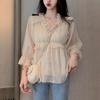 Camisa de verano para mujer, nuevo diseño, estilo occidental, elegante, profesional, drapeada, de manga larga, combina con todo.