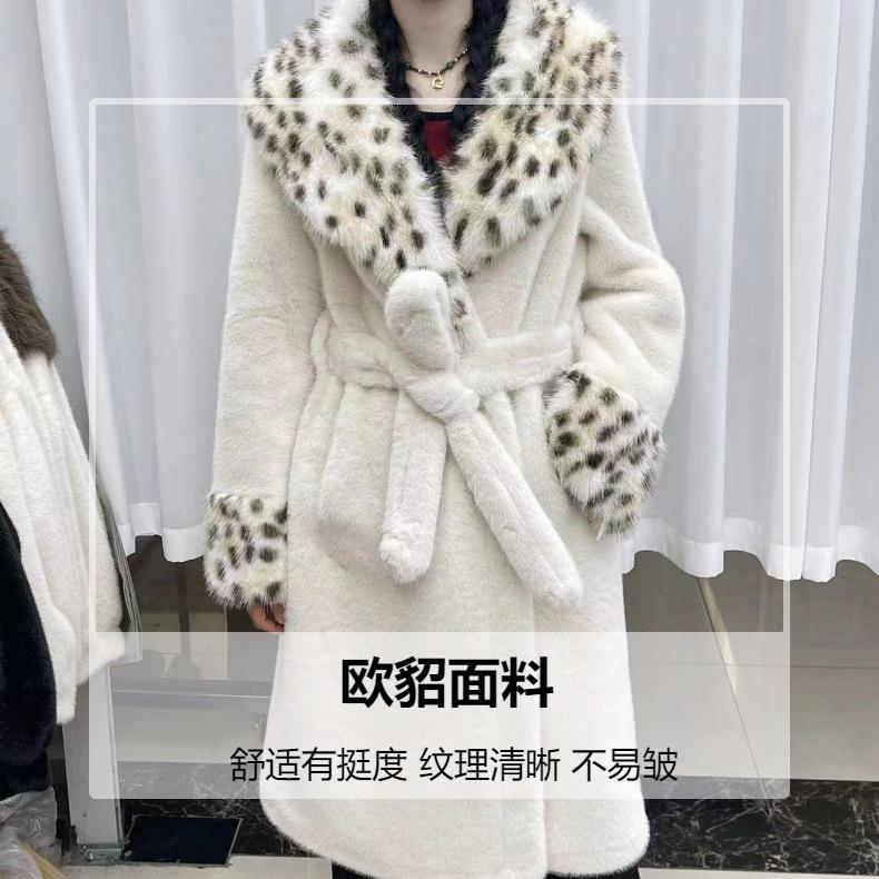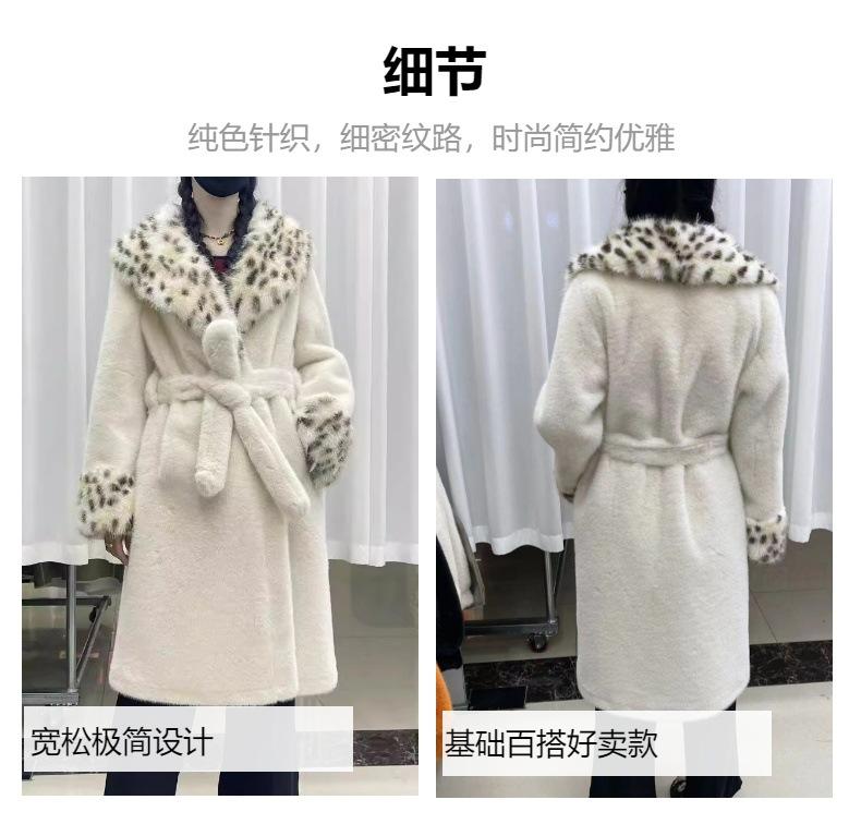 Venta al por mayor Transfronteriza Delgado Largo Piel Una Pieza Abrigo Cálido Chaqueta Exterior Immitación Visón Terciopelo Immitación Zorro Estampado Leopardo