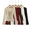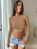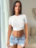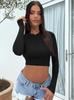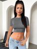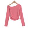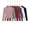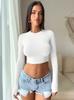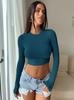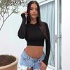 Ropa de Mujer Transfronteriza 2025 Tops de Manga Larga Color Puro Camiseta de Cuello Redondo Sexy Ropa Interior con Ombligo Descubierto Sexy para Damas Slim de Fondo t