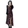 Conjunto de dos piezas con vestido floral y tirantes, primavera y verano 2024, nuevo estilo, cárdigan con cintura francesa, falda larga.