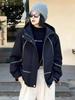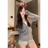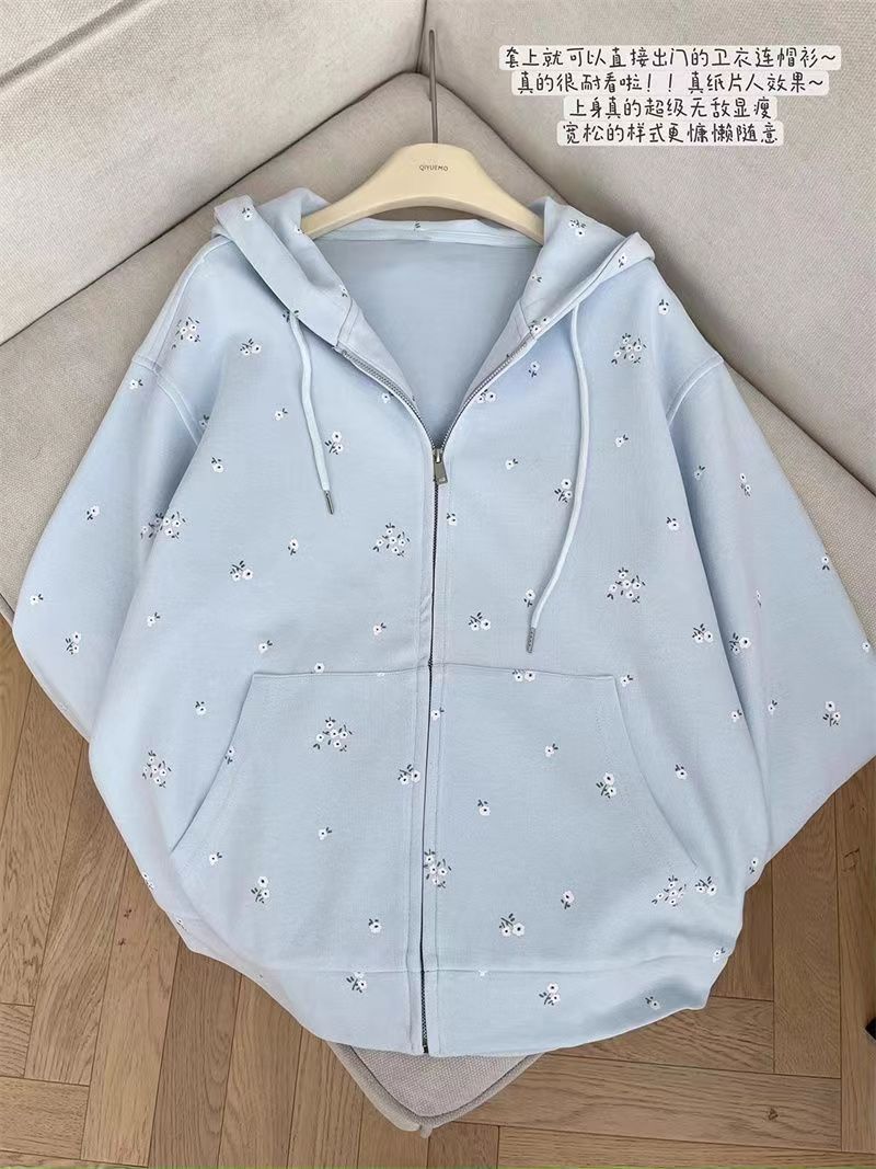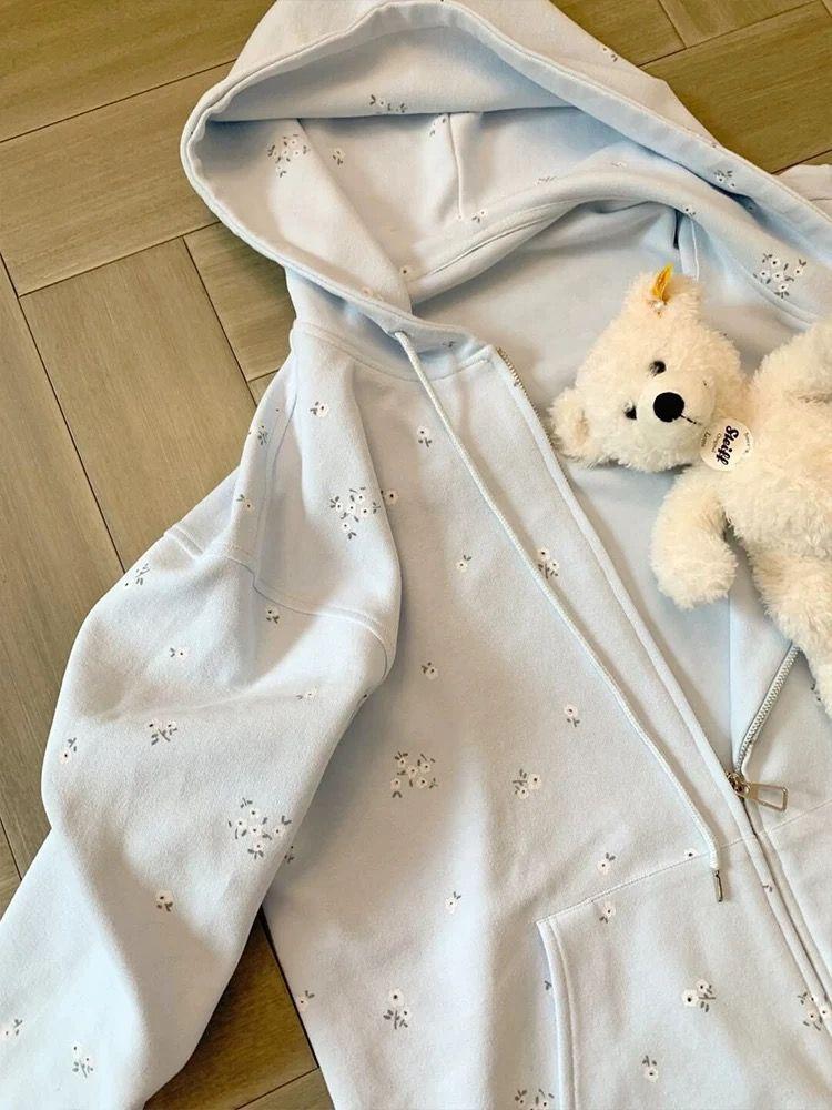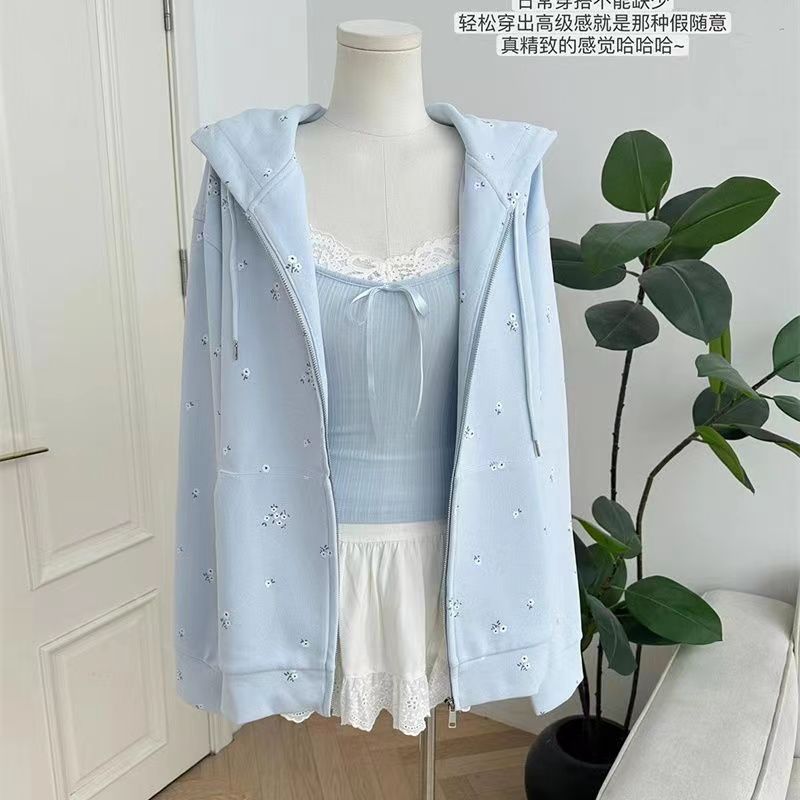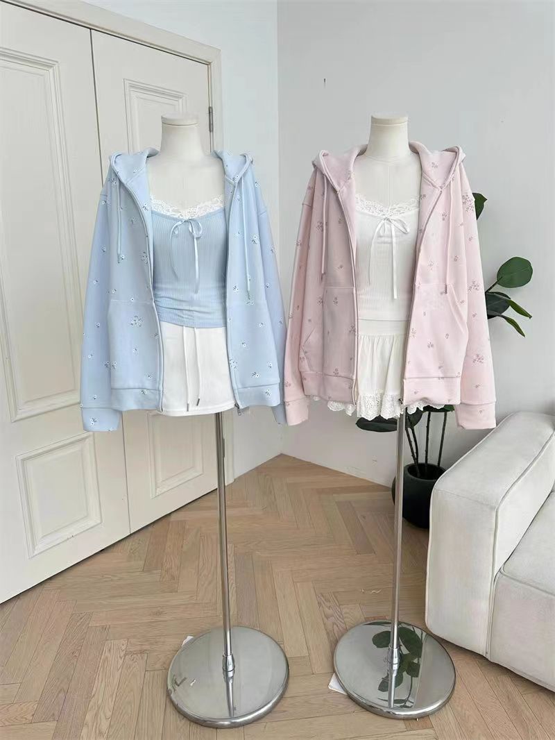 Suéter tipo cárdigan con capucha, estilo americano, floral, vintage, rosa, para mujer, primavera y otoño, holgado, diseño holgado, chaqueta con cremallera de nicho.