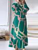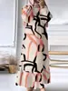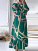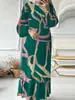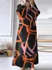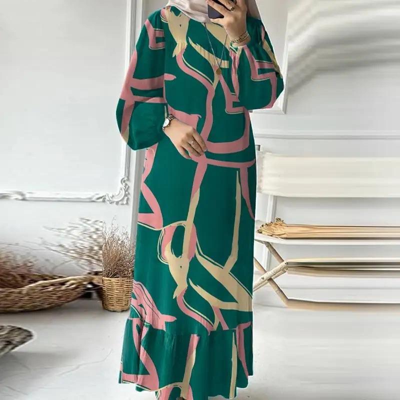 En Existencia Bata Estampada para Mujer Musulmana del Medio Oriente Transfronteriza de Manga Larga Vintage Suelta Vestido Largo con Dobladillo con Volantes