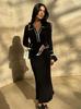 2025 Otoño Nuevo Europeo y Americano Amazon Transfronterizo Moda Color Contraste Estilo Pequeña Fragancia Delgado Tejido Elegante Vestido Largo
