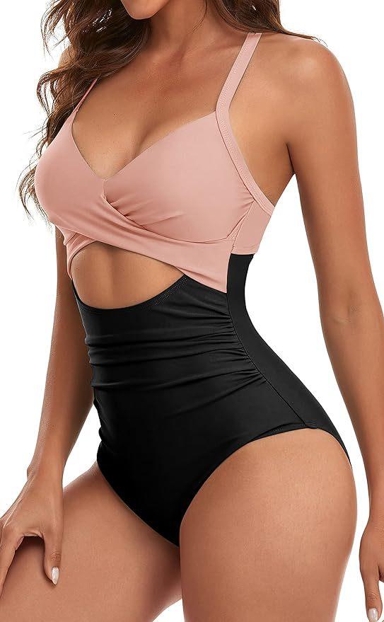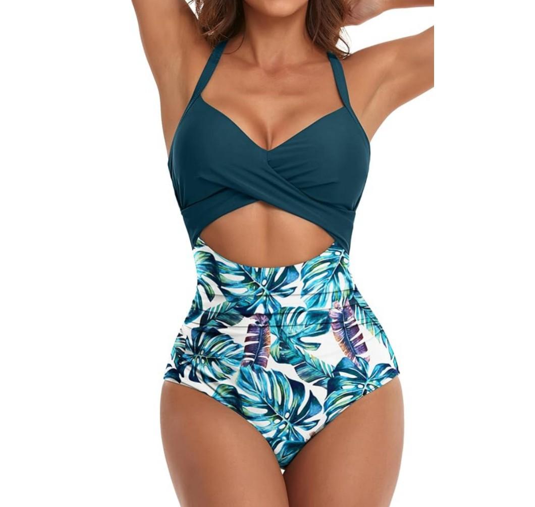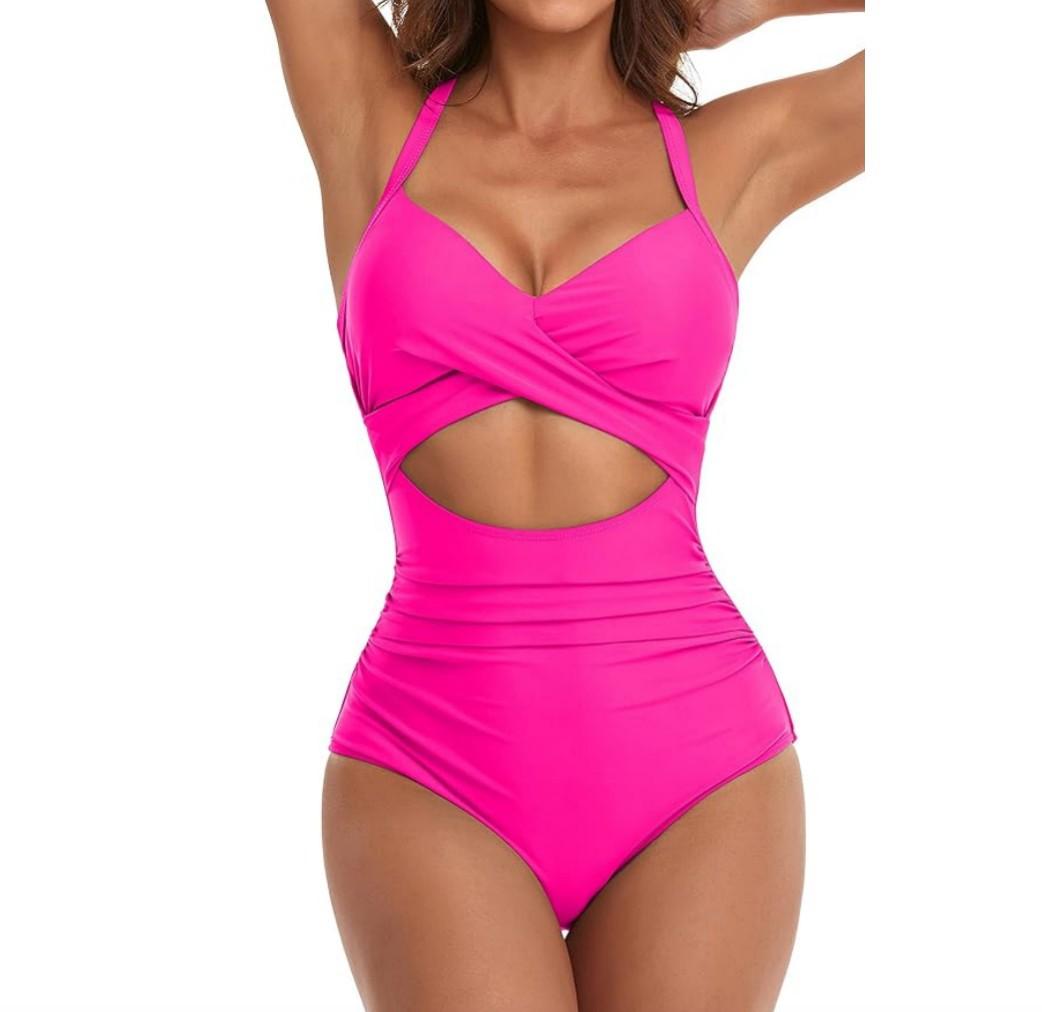 Traje de baño de una pieza de Amazon para mujer, comercio exterior transfronterizo entre Europa y Estados Unidos, bikini sexy hueco, sin espalda, con tirantes ajustados.