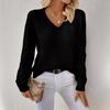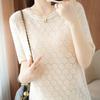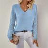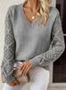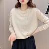 Suéter hueco de manga larga de primavera y otoño para mujer, jersey de crochet jacquard, cuello en V holgado, top de punto con explosión cruzada