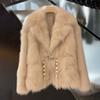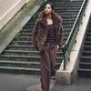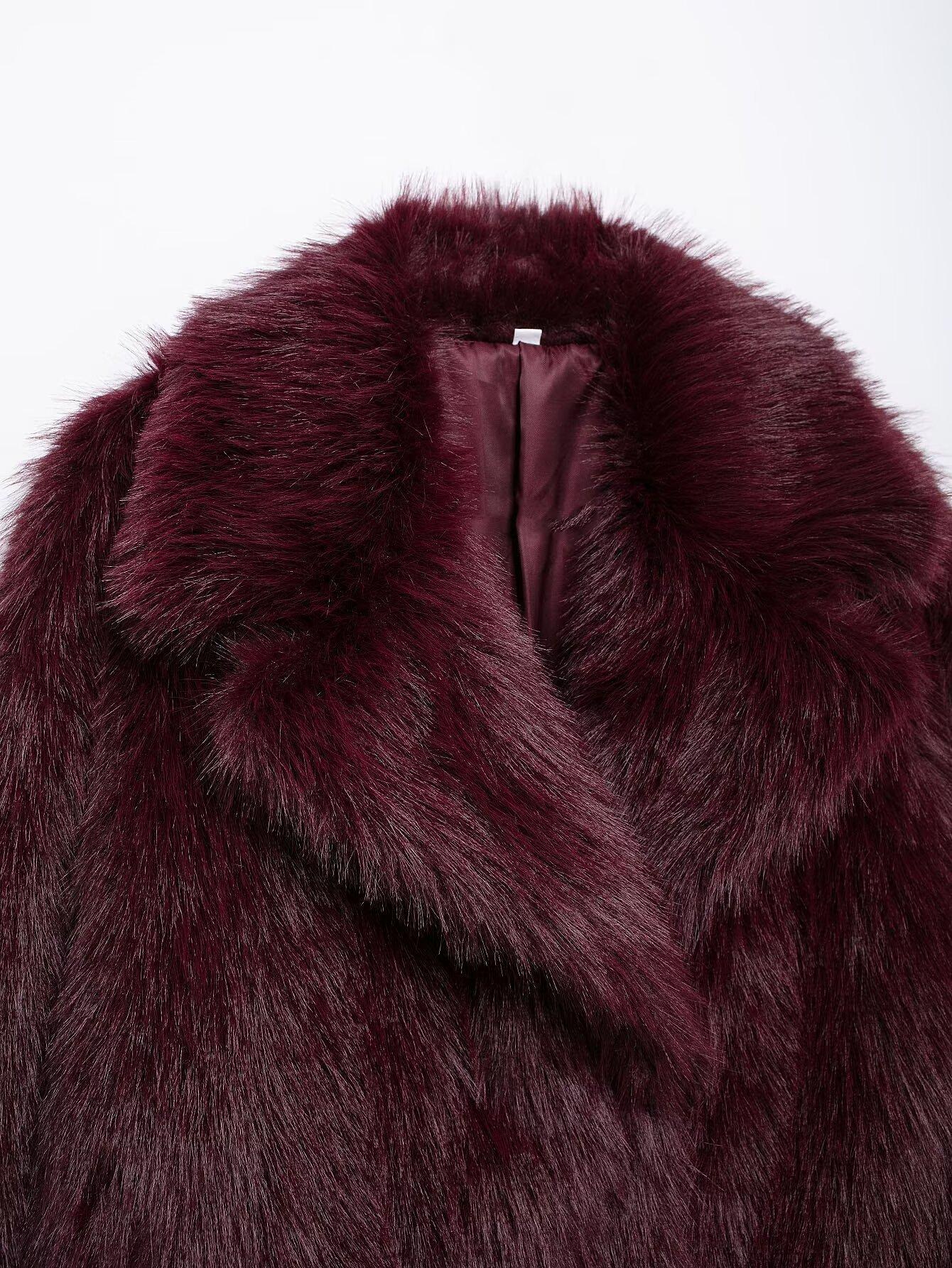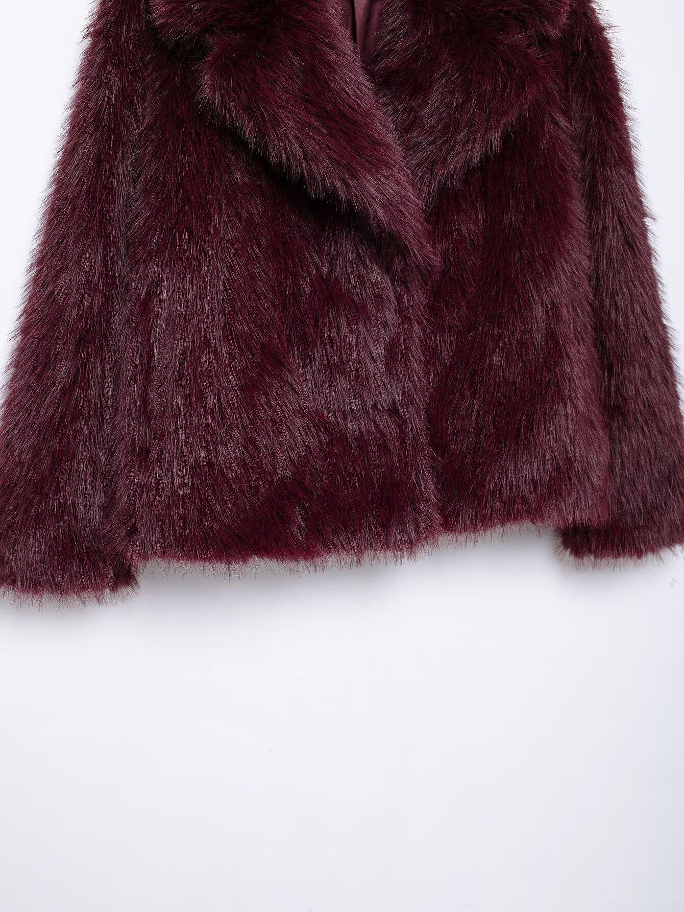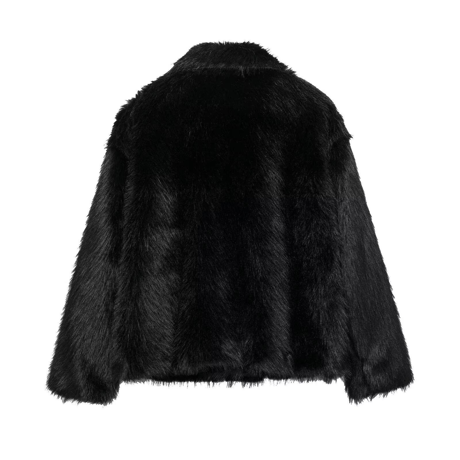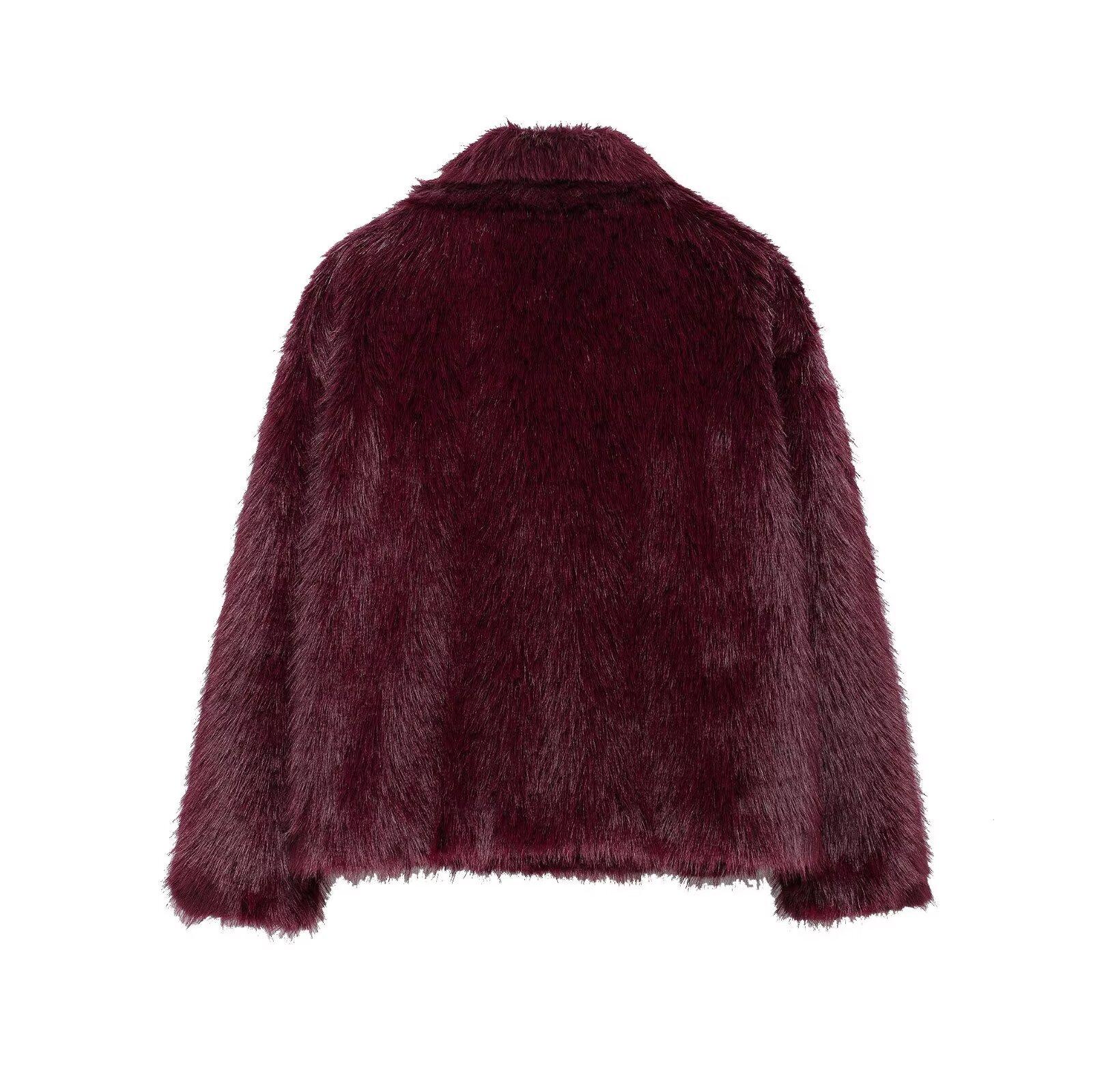 Zatrax-2024 Otoño Nuevo Abrigo Chaqueta de Manga Larga Suelta con Solapa Suave y Cera Esponjosa con Efecto Piel Sintética