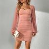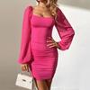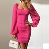 Vestido de gasa sexy, ajustado, de manga larga y burbujas, con falda plisada y perspectiva a la cadera, disponible en Europa y América, de Amazon.
