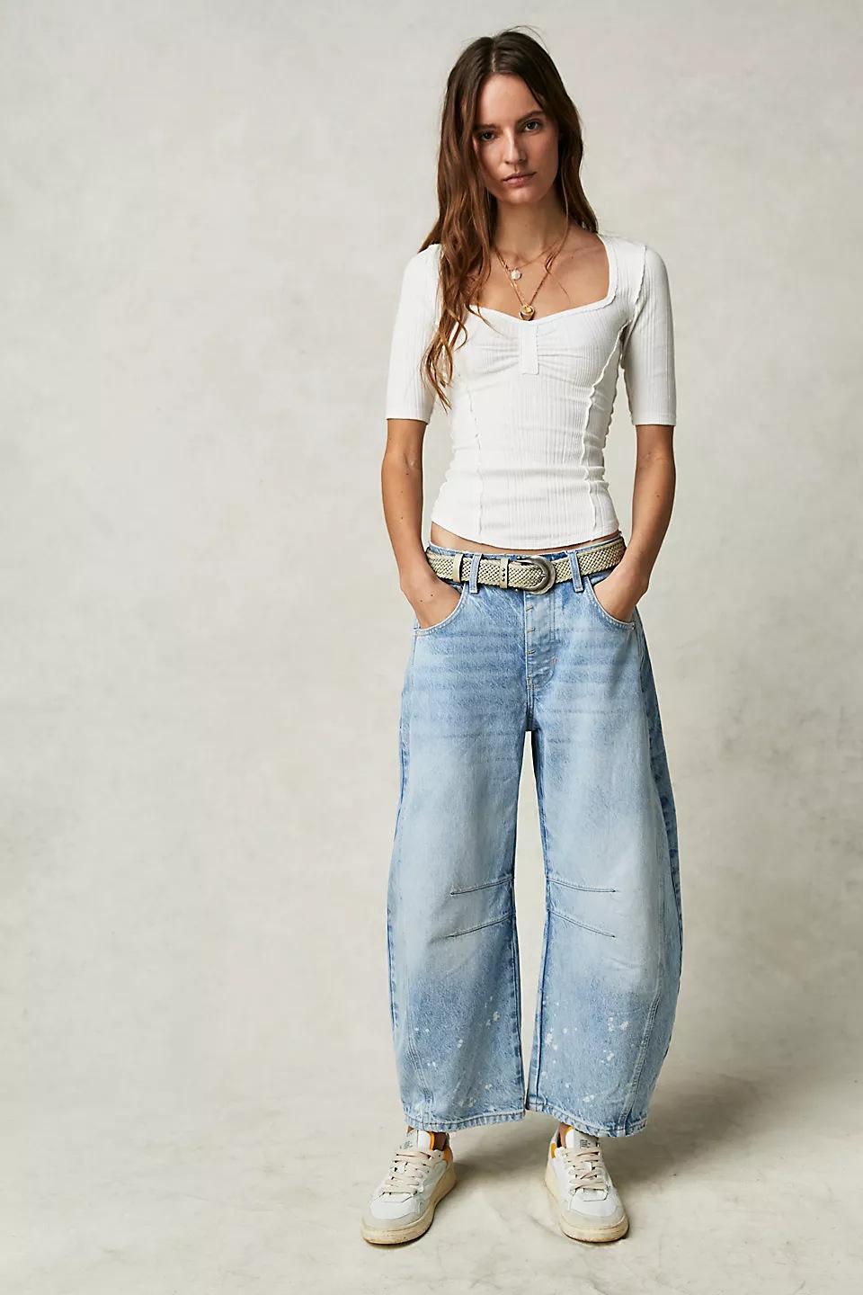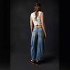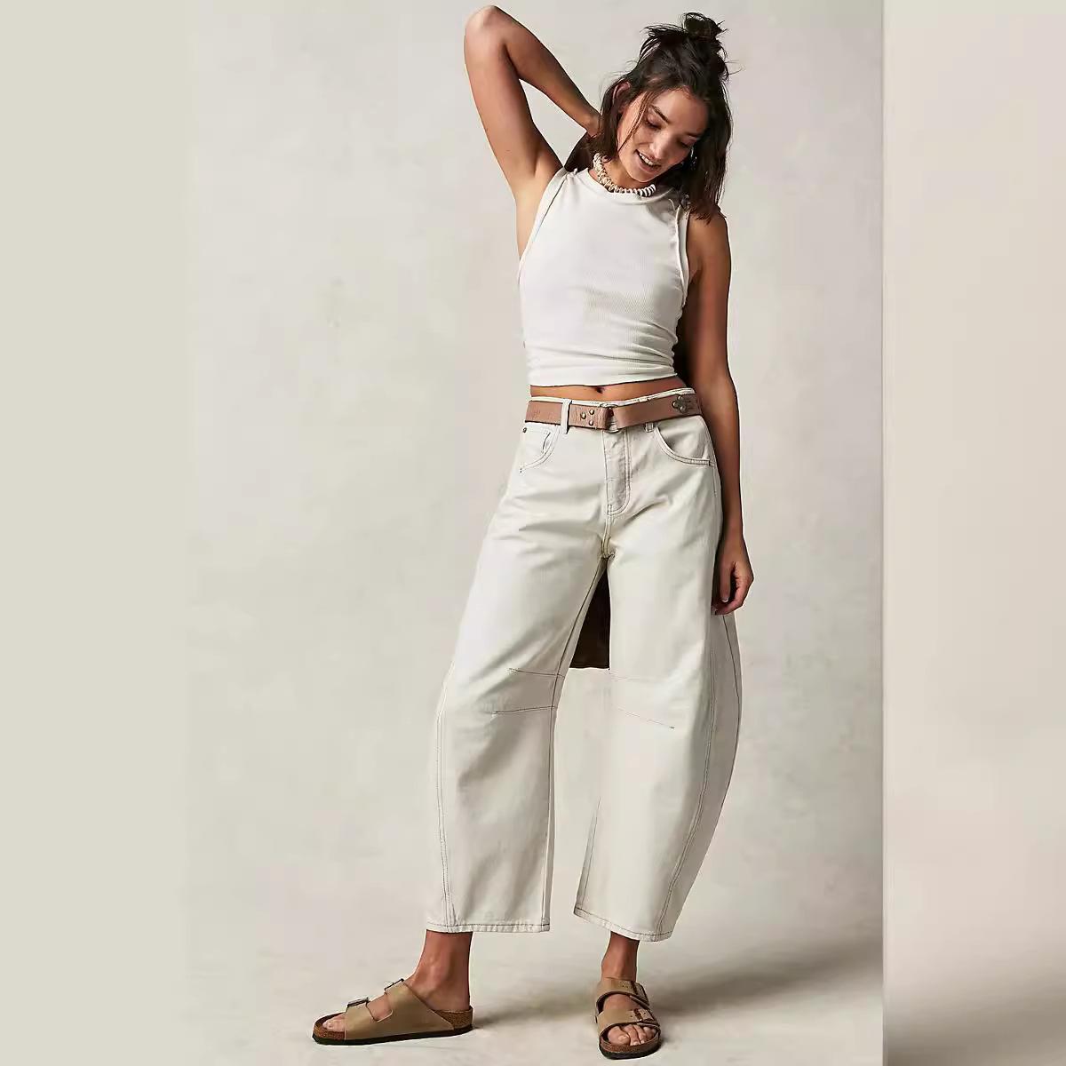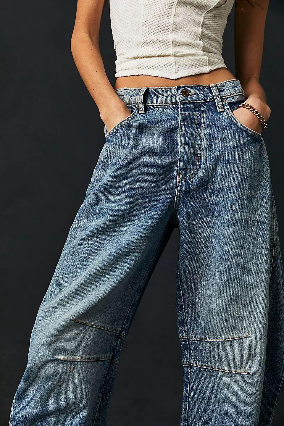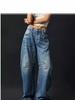 Pantalones vaqueros lavados de cintura media-baja para mujer, estilo informal, holgados, de pierna ancha, estilo transfronterizo europeo y americano, P096, 2024