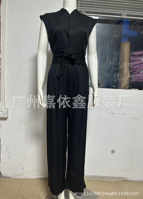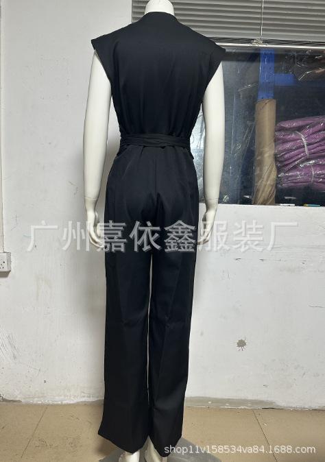 Punto 2023 Verano Nuevo Versátil Europeo y Americano Color Puro Moda Sexy Jumpsuit Adelgazante sin Mangas de Pierna Ancha para Mujer